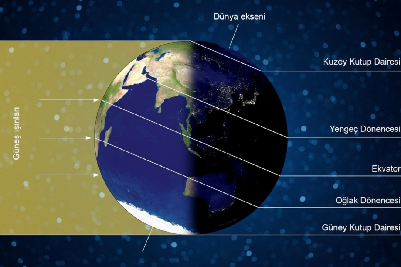 Dünya, kendi etrafında dönerken 23,5 derece eğik bir açıyla hareket eder. Bu eğiklik, yıl boyunca güneş ışınlarının Dünya’nın farklı bölgelerine farklı açılarla ulaşmasına yol açar.