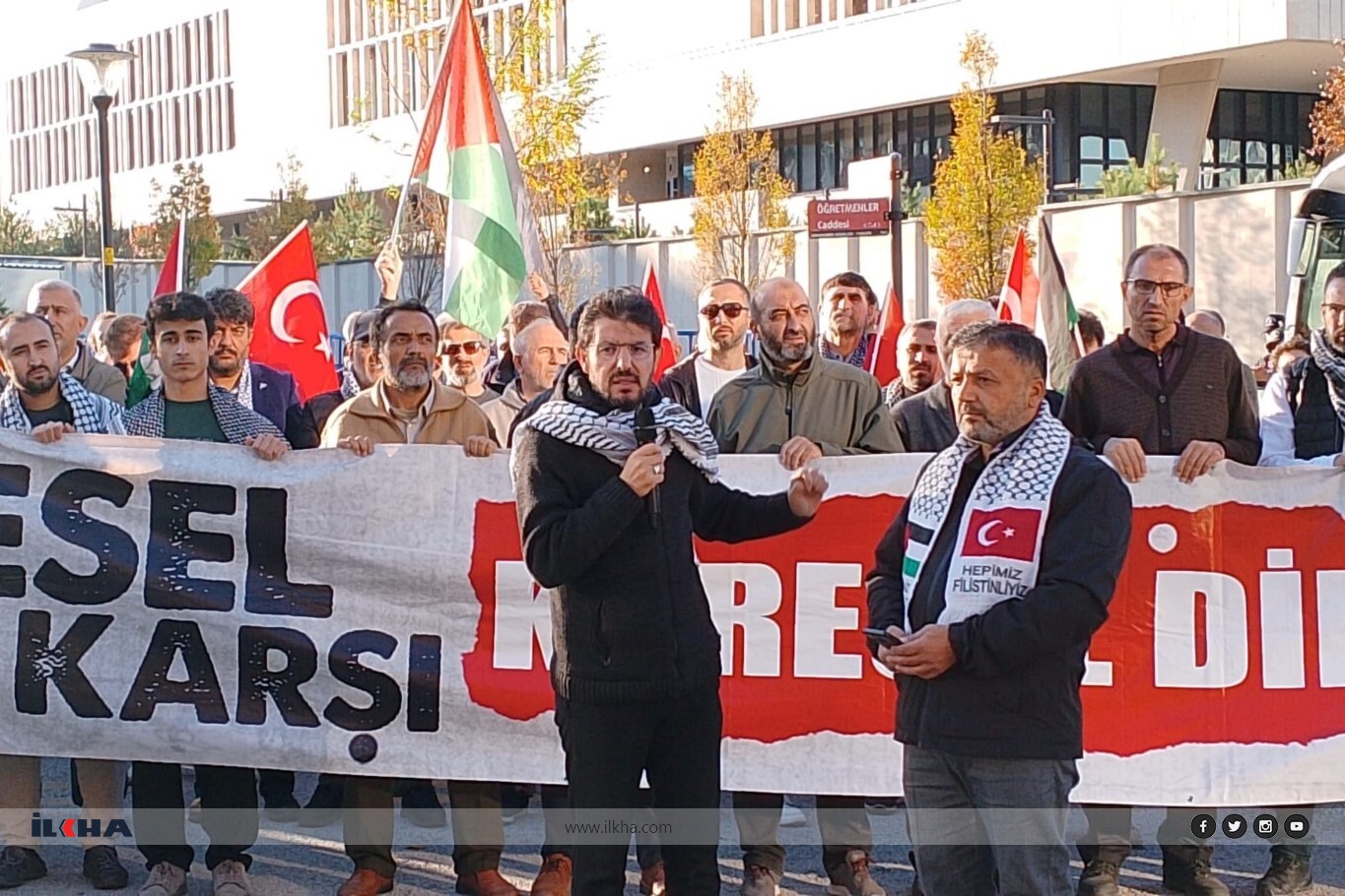 قرأ المحامي مصطفى أمين أوغلو، رئيس جمعية القدس والقانون، البيان الصحفي نيابة عن منصة أنقرة للتضامن مع فلسطين (ANFİDAP) أمام السفارة الأمريكية، ودعا إلى أن "تتخذ الدول الوسيطة خطوات رادعة لإيقاف إسرائيل".