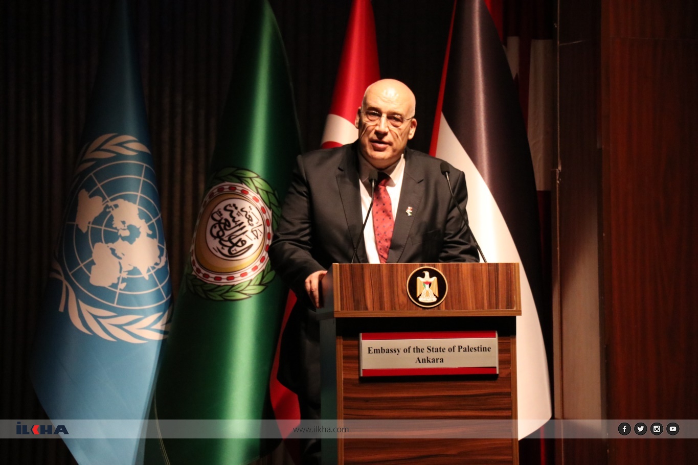 بدوره، قال السفير الفلسطيني في أنقرة، نصري أبو جيش، في كلمة الافتتاح: "اليوم، نجتمع في هذه المناسبة المهمة على أرض تركيا الشقيقة لإحياء اليوم الدولي للتضامن مع الشعب الفلسطيني. هذا اليوم يُعد مناسبة لإعادة المطالبة بحقوق شعبنا في الحرية والعدالة. وقد اعتمدت الجمعية العامة للأمم المتحدة في عام 1977 يوم 29 تشرين الثاني/ نوفمبر كيوم دولي للتضامن مع الشعب الفلسطيني، واليوم ما زال يُعلن لتذكير العالم بوجود شعب يعيش تحت الاحتلال". (İLKHA)