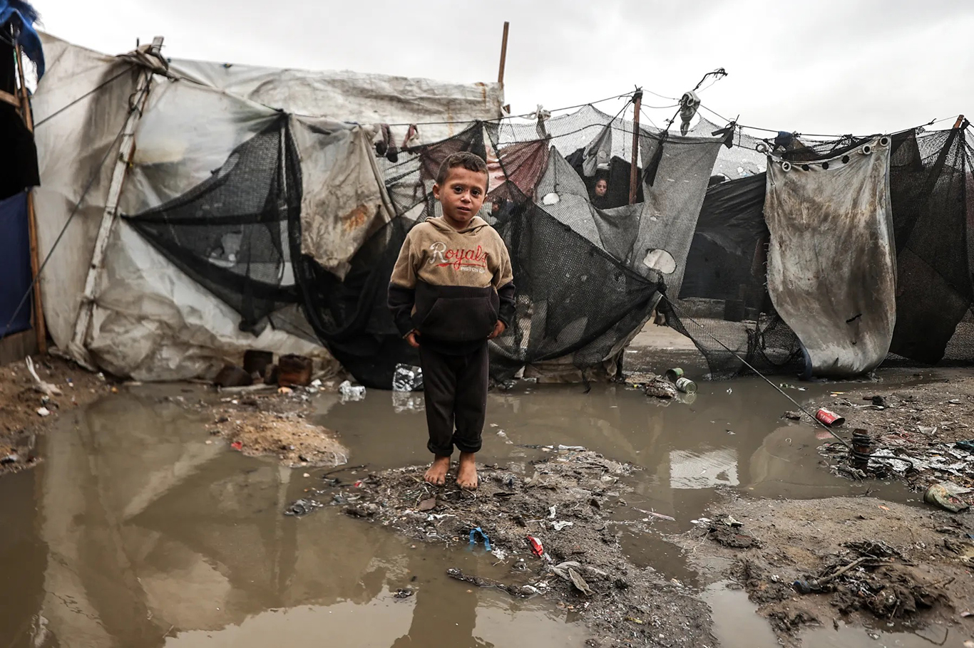 Yağış sonrası su ve çamur birikintilerinin oluştuğu bölgede, siyonist işgalcilerin saldırıları nedeniyle evleri yıkılan Filistinliler kötü hava koşullarıyla da mücadele ediyor. (İLKHA)