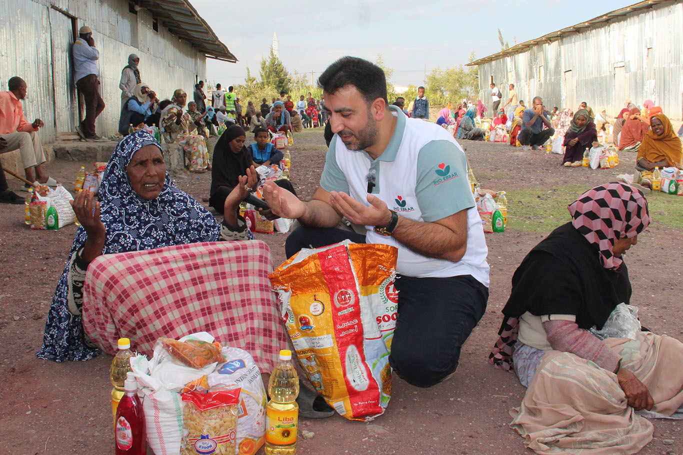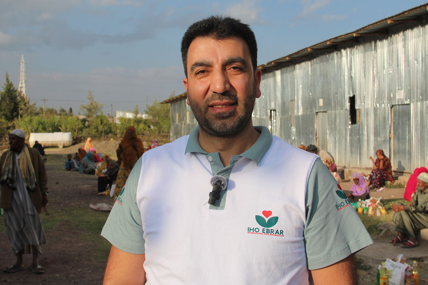 "Uluslararası yardım kuruluşu IHO EBRAR olarak Afrika'nın Etiyopya ülkesindeyiz. Burada yardım çalışmalarımıza başladık. İnşallah bugün ilk etapta yüzlerce kişiye gıda paketi dağıttık. Yerlerinden edilmiş; mazlum, yoksul, kimsesiz ve birçoğu zaten engelli olan bu kişilere, bir nebze olsun umut olmak için bize yapılan bağışlarla gıda yardımında bulunduk."