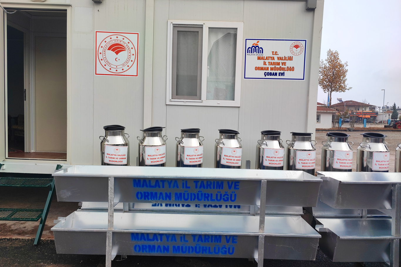 Malatya'da yetiştiricilere destek amacıyla İl Tarım ve Orman Müdürlüğü bahçesinde Çoban Evi (konteyner), akıllı yemlik, metal sıvat, süt güğümü ve buzağı koruyucu malzemeleri dağıtım programı gerçekleştirildi.