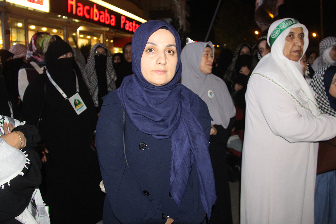 "Gün yerinde oturma vakti değil, kıyam zamanıdır" diyen Amine Topdemir, "Bugün Filistin için buradayız. Gerekirse malımızı-canımızı Filistin için feda ederiz. Filistin, İslam davası için kendilerini feda etmiş durumda. Bizlerinde onlara yardımcı olması gerekir. Ey İslam ümmeti, liderleri uyanın! Artık konuşulacak bir şey kalmadı. Bugün artık kıyam günüdür. Büyük şeytan Amerika'yla oturup kalkamayız. Bugün oturma günü değil, cihad etme zamanıdır. Tüm varlığımızla Filistin'in yanındayız." ifadelerini kullandı.
