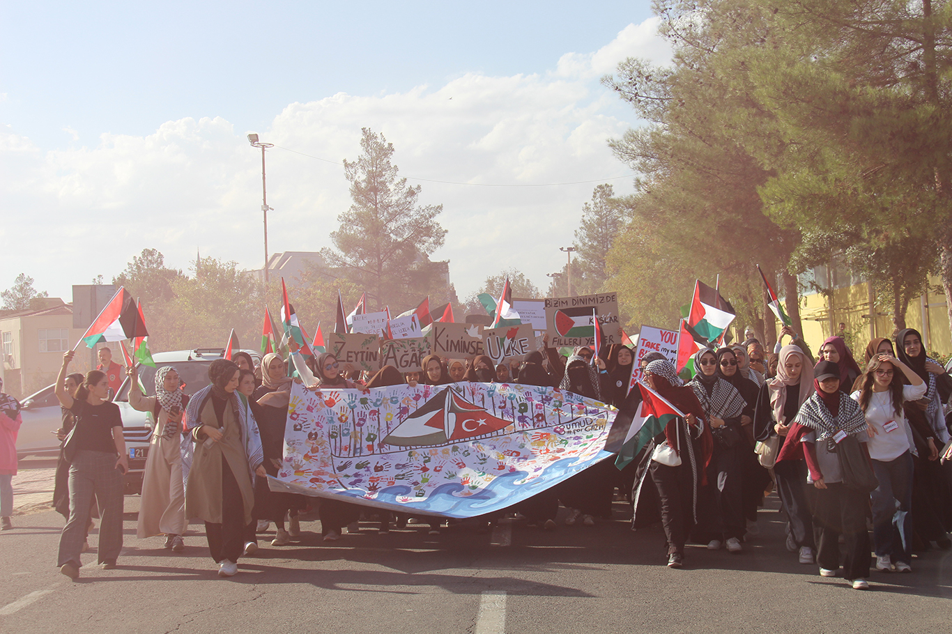 Aksa Tufanı yıldönümünde üniversiteli gençler Gazze için yürüdü