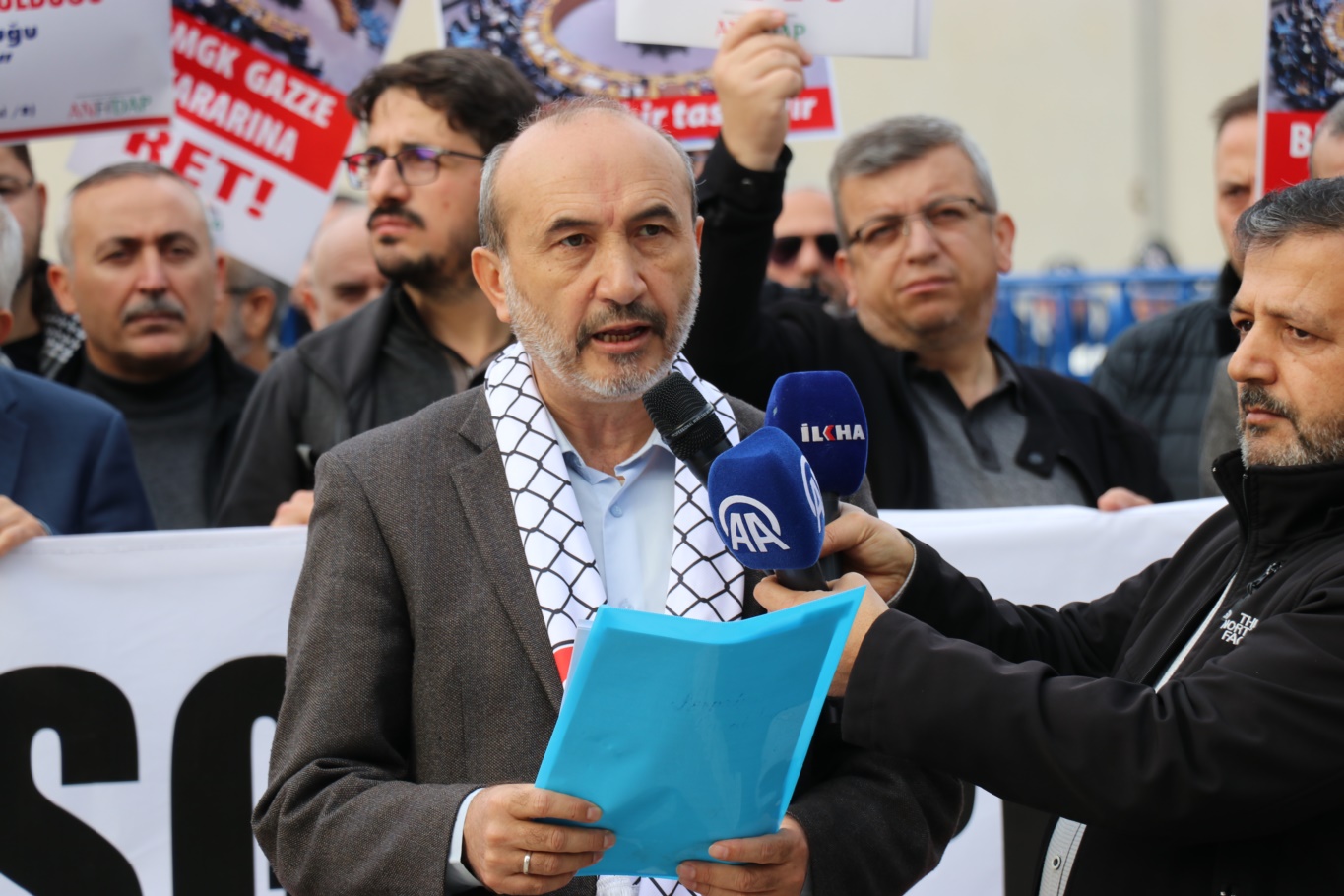 Son olarak Karakaş, "Biz burada Filistin halkıyla dayanışmak için toplandık. Filistin halkının sözcüsü olmak, bize Allah’ın yüklediği bir vazifedir. Çünkü Allah bizleri kardeşler kılmıştır. Biz kardeşlik şuuru ve bilinci gereği buradayız ve bundan sonra da bu kardeşliği sürdüreceğiz. Siyonizme zarar verebilecek her çeşit eylemlilikte bulunacağız; boykotta, basın açıklamalarında ve elimizden gelen bütün çabalarda kardeşlerimizi desteklemeye devam edeceğiz." dedi.