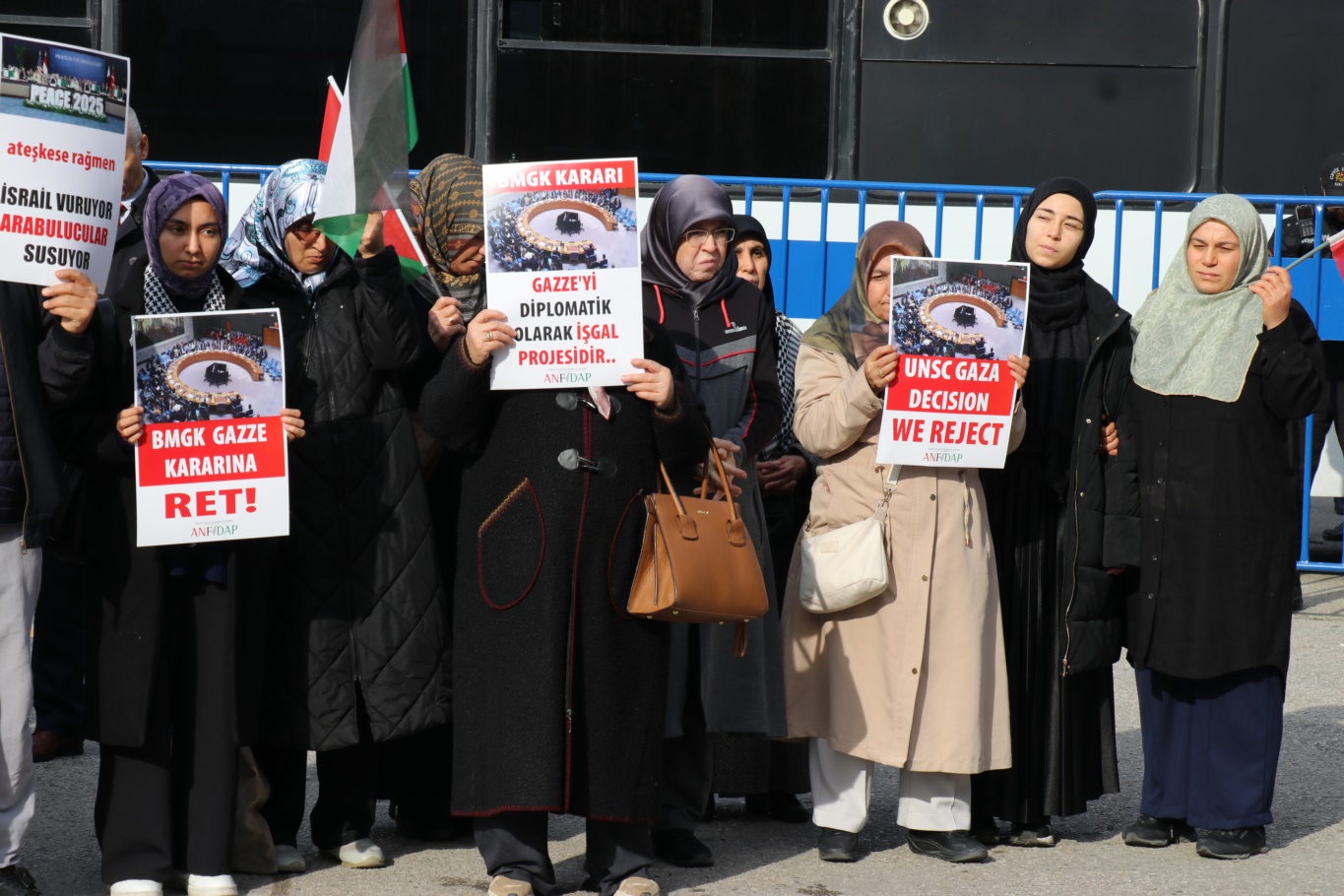 Ankara Filistin Dayanışma Platformu (ANFİDAP), Cuma namazı sonrası ABD Büyükelçiliği önünde düzenlediği basın açıklaması ve protestoda, ateşkes sonrası Gazze’deki ihlalleri ve BMGK kararını eleştirdi.