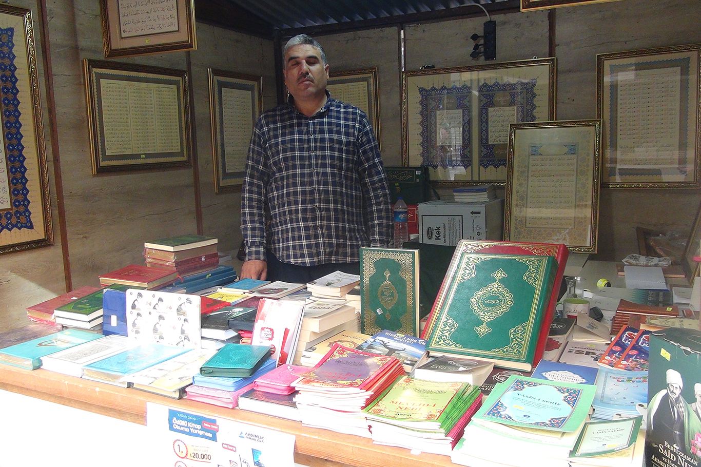 Dini kitaplar ve tablolar satan Mehmet Emin Çiçek, “Kaymakamlığımızın düzenlemiş olduğu kitap fuarında biz de Kur-anı Kerim, risale-i nur, kişisel gelişim kitapları ile fuarda bulunuyoruz. Elimizden gelen imkânları seferber etmeye çalışıyoruz. Tüm halkımızı fuara bekliyoruz. Kitaplara vereceğiniz değer için teşekkür ederiz.” dedi.