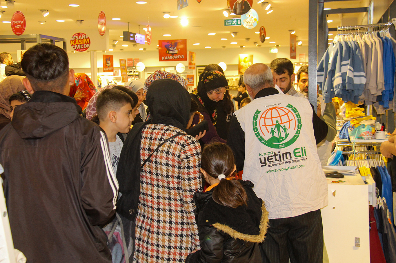 Yardım organizasyonu çerçevesinde çocuklar, aileleriyle birlikte kentteki bir giyim mağazasına götürülerek kışlık ihtiyaçlarını kendi beğenileriyle seçme imkânı buldu. Çocuklar mağazada mont, bot, kazak, pantolon ve diğer kışlık kıyafetleri diledikleri gibi seçerek aldı.