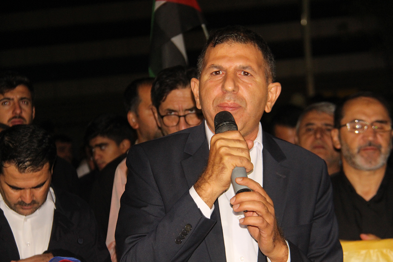 Oğraş'ın hitabının ardından bir konuşma yapan Peygamber Sevdalıları Vakfı Yönetim Kurulu Üyesi Ömer Çelik, işbirlikçi ABD'nin Gazze üzerindeki kirli planlarına karşı sözde İslam ülkelerinin destekleyici tavrını sert bir dille eleştirdi.