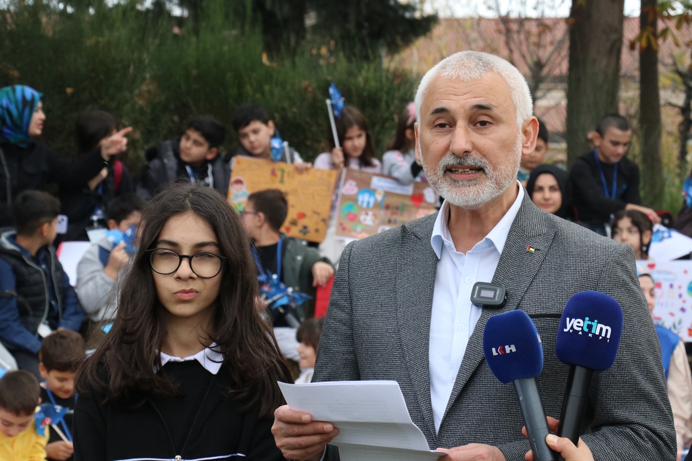Yapılan etkinliklerin ardından dünya Çocuk Hakları ile ilgili hazırlanan basın metnini okuyan Yetim Vakfı Başkanı Murat Yılmaz, "Bugün 20 Kasım Dünya Çocuk Hakları Günü… Çocuk hakları dünya üzerindeki tüm çocukların doğuştan sahip olduğu eğitim, sağlık, barınma haklarının, fiziksel ve duygusal sömürüye karşı korunma yanında her türlü ihmal ve istismara karşı dokunulmazlığın kanunlarla sağlanmasını kapsamaktadır. 20 Kasım 1989'da BM Genel Kurulu, Çocuk Hakları Sözleşmesi'ni oy birliğiyle kabul etmiştir. Çocuk Hakları Sözleşmesi dünya üzerinde en çok ülke tarafından imzalanmış sözleşme hüviyetini taşımaktadır. 54 maddeden oluşan Çocuk Hakları Sözleşmesi, öncelikle ana babaya olmak üzere, ailelere, öğretmenlere, sağlık çalışanlarına, emniyet görevlilerine, hükümetlere bir başka deyişle en sade vatandaştan en üst düzey yönetime kadar her kişi ve kuruma çocuklarla ilgili sorumluluklar yüklemektedir. Sözleşme, çocukların ülkelerinin toplumsal ve siyasal yaşamında etkin, üretken ve katılımcı bireyler olmaları konusunda devletlere elverişli koşulları hazırlamaları için çağrıda bulunmaktadır. Ne var ki çocukların çoğu bu tabii haklarından ve onlar adına temenni ettiğimiz güzel hayattan nasiplenemiyorlar." diye konuştu.