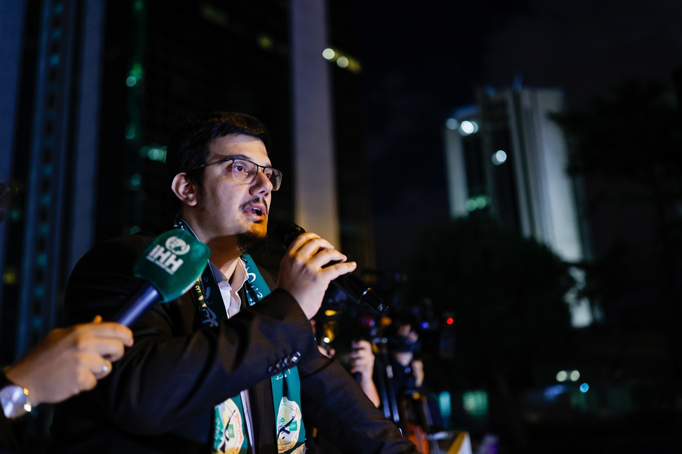 Kur'an-ı Kerim tilavetiyle başlayan programda konuşan Anadolu Gençlik Derneği (AGD) İstanbul İl Başkanı Mehmet Yaroğlu, "Geçen hafta da siyonist rejimin Sumud Filosu'na yaptığı saldırı sebebiyle buradaydık. Dün de Sumud Filosu aktivistlerini havalimanında karşıladık. Arkadaşlarımız diyor ki, siyonist rejim hapishanelerinde, sorgu odalarında bizim karşımızda Türkçe bilen, Türkiye Cumhuriyeti vatandaşı olan, ‘biz de Türkiye Cumhuriyeti vatandaşıyız' diyen İsrail askerleri vardı. Türkiye Büyük Millet Meclisi'nde HÜDA PAR bununla alakalı bir teklif verdi. Teklif geleli bir buçuk yıldan fazla bir süre olmuş. Bari bunu yapalım. Hem israil vatandaşı olup hem de ülkemiz vatandaşı olan bu alçakların vatandaşlıklarını iptal edelim." dedi.