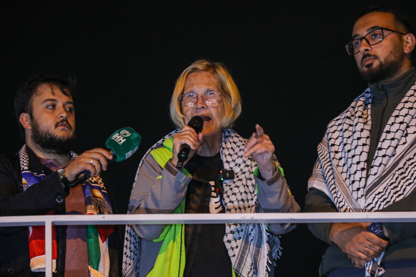 Aktivistlerin uluslararası sularda alıkonulduklarını belirten Uluslararası Özgürlük Filosu Koalisyonu Komite Üyesi Ann Wright, "Bu akım Özgürlük Filosu'yla başladı, Sumud'la devam etti ve Vicdan'la sürüyor. Hepsinin amacı ablukayı kırmak ve açlığı durdurmaktı. İsraile buradan sesleniyoruz! İsrailsiz bir dünya, özgür Filistin.' şeklinde konuştu. (İLKHA)