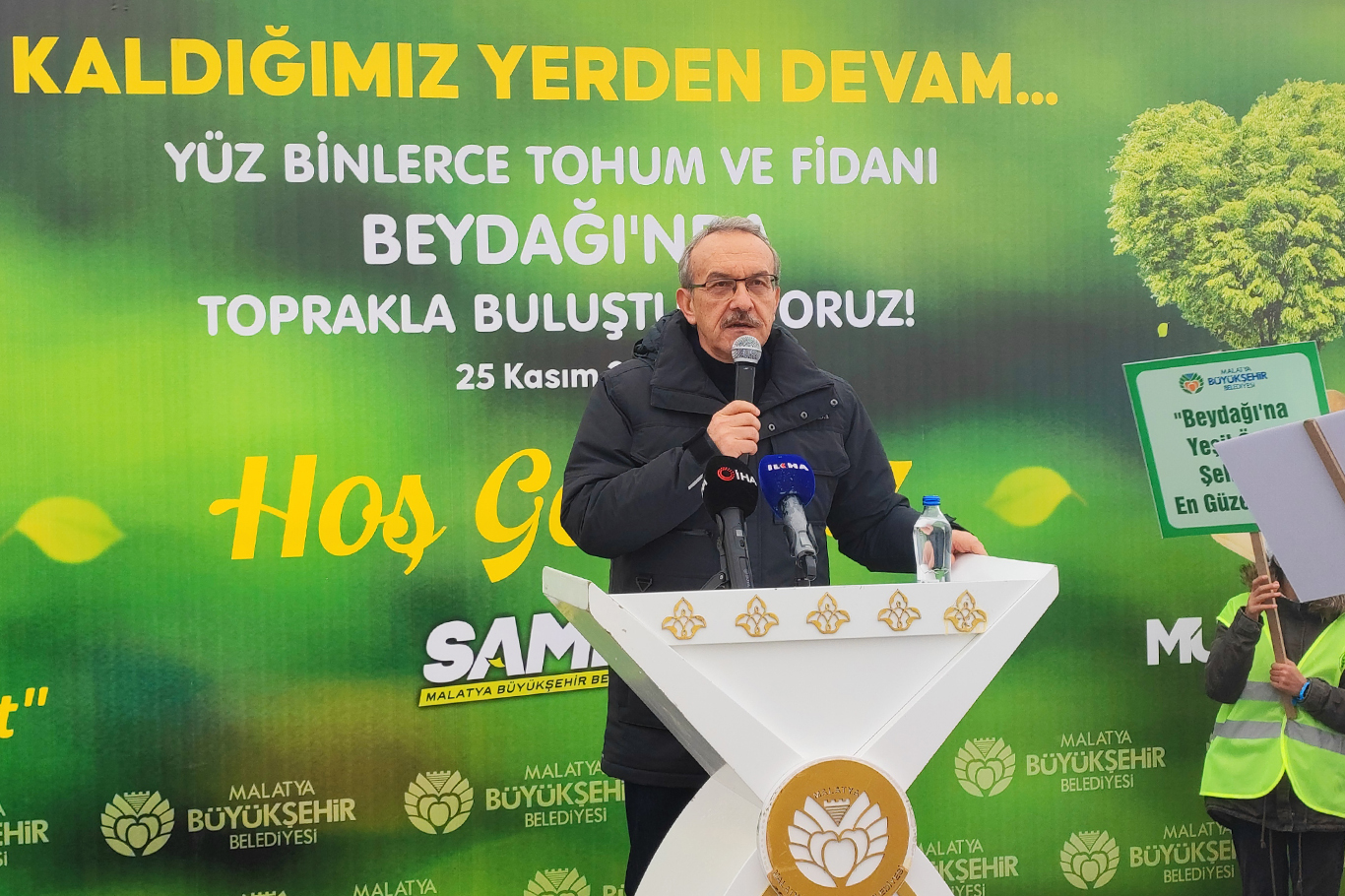 Beydağı'nın ağaçlandırılması noktasında seferberlik başlatan Malatya Büyükşehir Belediye Başkanı Sami Er, "İlimizin dört bir yanında yeşili artırmak, çevremizi korumak ve gelecek nesillere daha yaşanabilir bir Malatya bırakmak adına önemli bir adım attık. Çevre kirliliği ve iklim değişikliğinin yaşamımızı doğrudan etkilediği bir dönemde doğaya sahip çıkmak artık bir tercih değil zorunluluk haline gelmiştir. Beydağları'nın Konak ve Karagöz mahalleleri sınırları içerisinde yürüttüğümüz ağaçlandırma sahasında başlattığımız hazırlık ve dikim süreci, Malatya’mızın sürdürülebilir şehir vizyonunun en önemli adımlarından biridir. Bu bölgede, fidan dikimine uygun toprak hazırlığı tamamlandı, saha düzenlemesi ve altyapı kontrolleri titizlikle gerçekleştirildi. Bugün burada toprağa değen her bir fidan, yalnızca bugünün değil, yarının Malatya'sı için bir nefes, bir umut, bir yaşam kaynağıdır." diye konuştu.