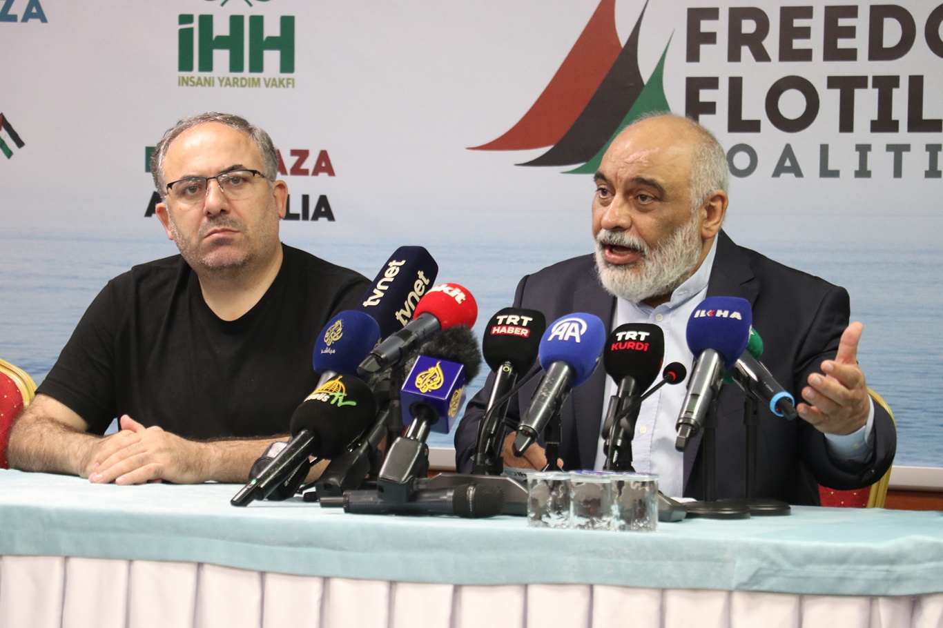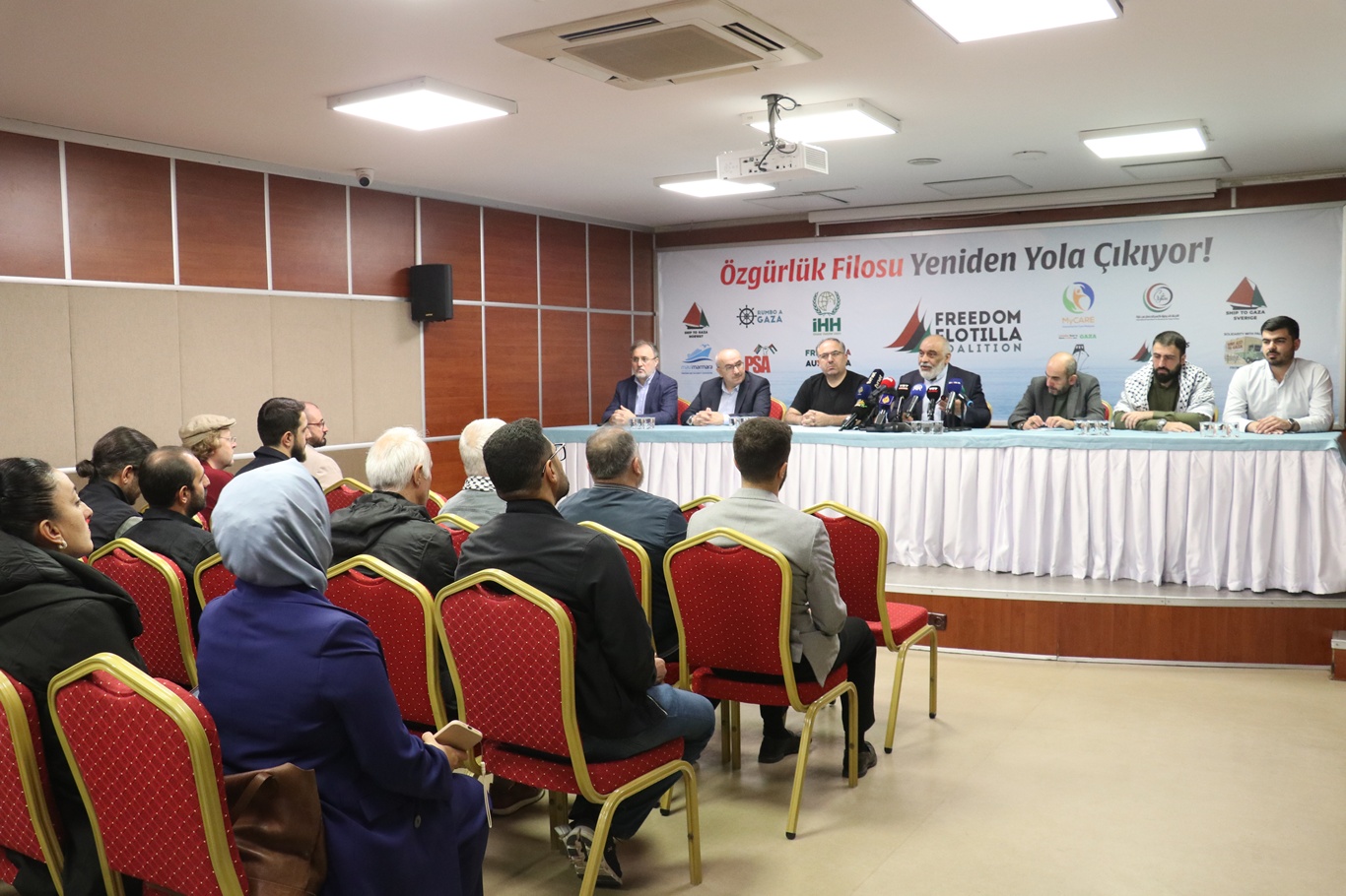 Yeniden harekete geçen Uluslararası Özgürlük Filosu ile ilgili İHH Genel Merkezi'nde düzenlenen basın toplantısında konuşan sivil toplum kuruluşu yetkilileri, vicdanın ve insanlığın sesi olan Küresel Sumud Filosu ve Uluslararası Özgürlük Filosu'na her alanda sahip çıkılması çağrısında bulundu.