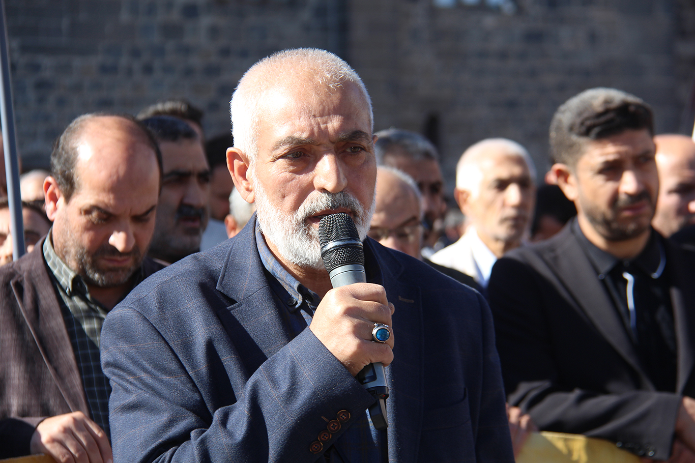 Merkez Sur İlçesi tarihi Ulu Camii önünde Cuma namazı sonrası düzenlenen basın açıklamasında bir konuşma yapan Şehidler Kervanı Platformu Başkanı Ömer Çelik, Yahudilerin ihanetlerini hatırlatarak dün olduğu gibi bugünde onlarla dostluk yapılamayacağını vurguladı.