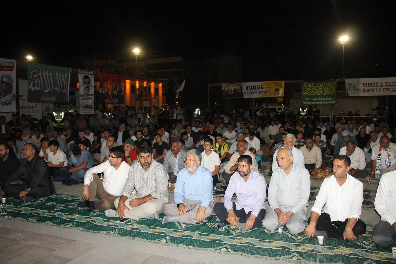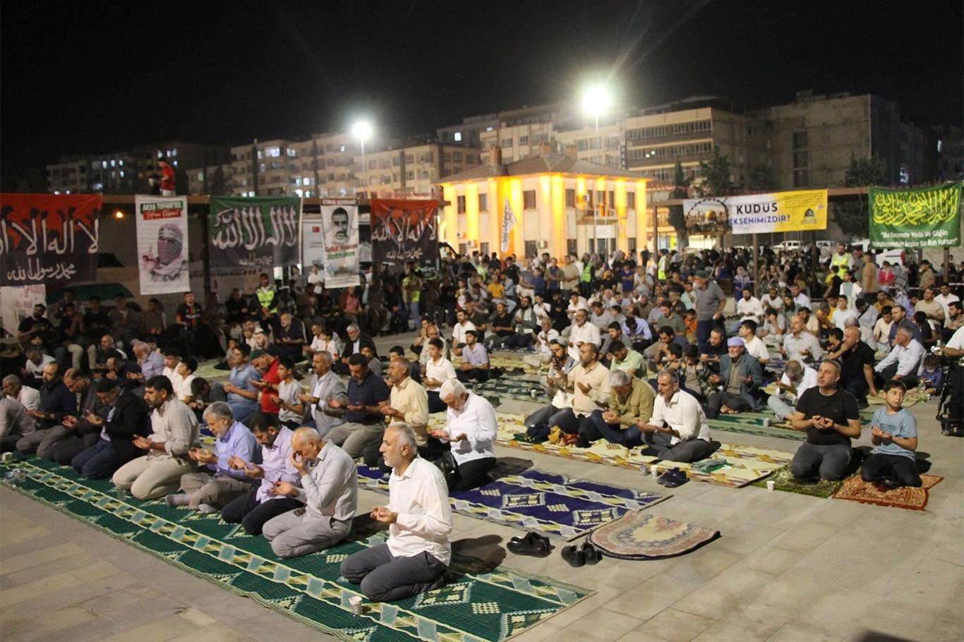 Şanlıurfa’da Peygamber Sevdalıları Derneği ve sivil toplum kuruluşlarının öncülüğünde Rabia Meydanı’nda 'Kudüs ve Gazze ümmetin emaneti' temasıyla kitlesel bir program düzenlendi.