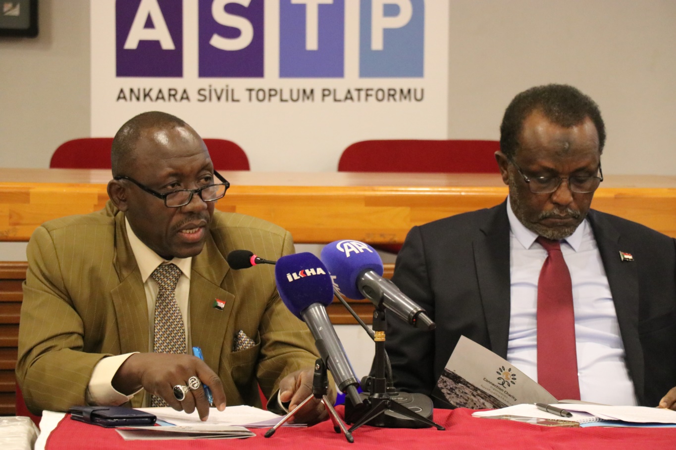 Ankara Sivil Toplum Platformu (ASTP), “Sudan İçin Acil İnsani Yardım Vakti” sloganıyla Araştırma ve Kültür Vakfı’nda düzenlediği basın açıklamasında, Sudan’a desteğin önemine dikkat çekilerek, Acılar bitip istikrar var oluncaya kadar Sudan'ın yanındayız” denildi.