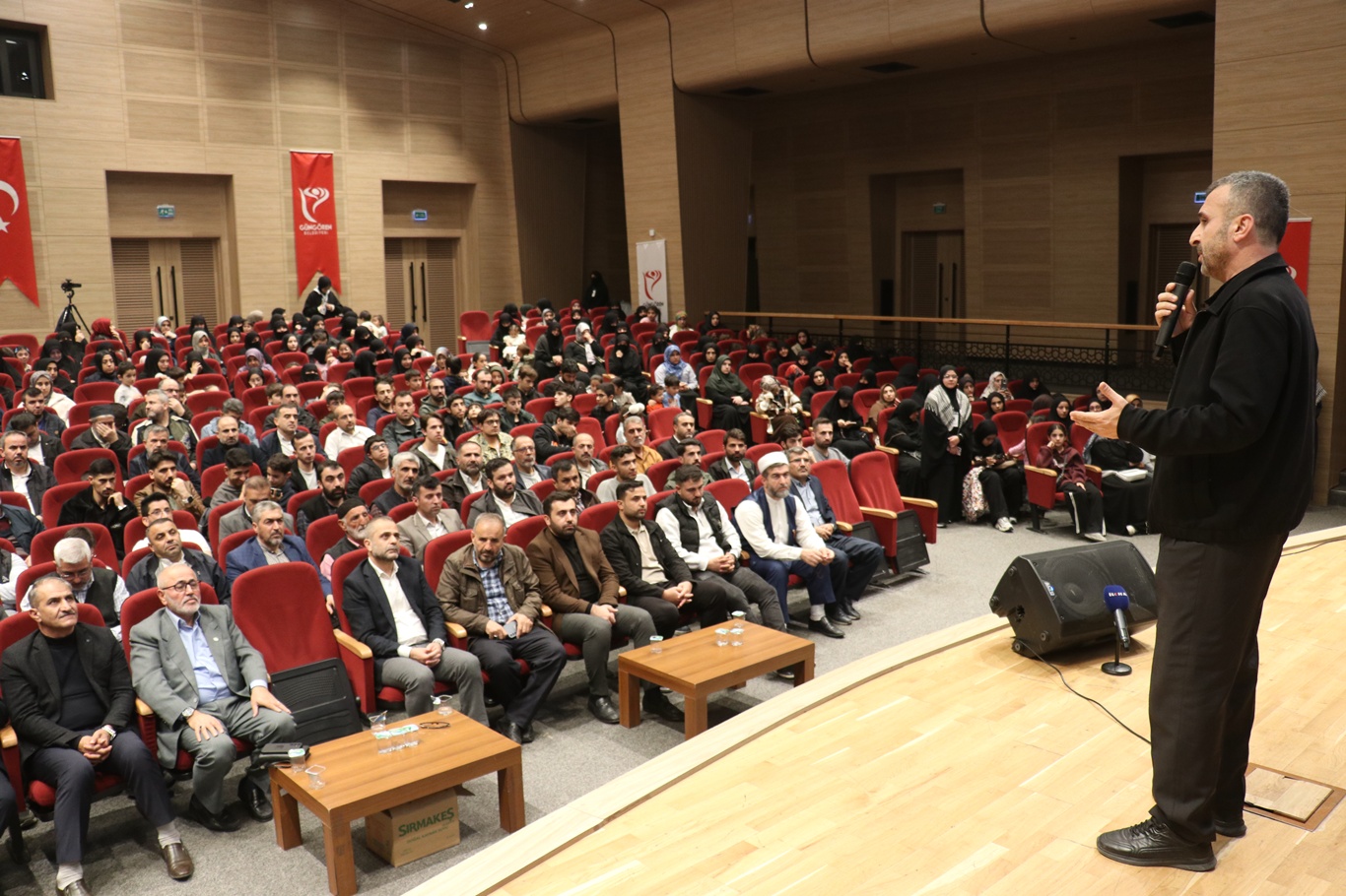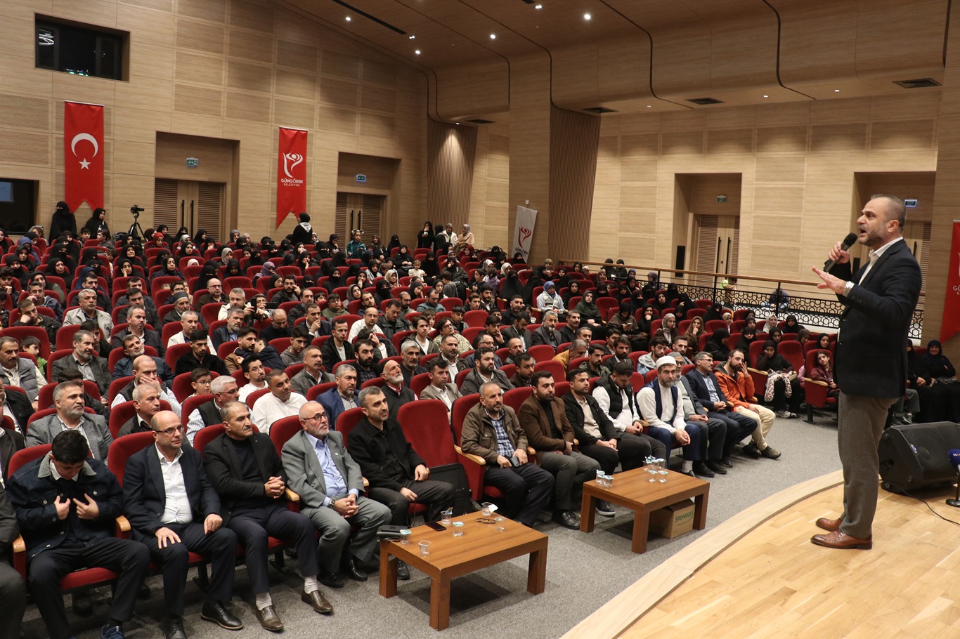Musab Bin Umeyr olmak isteyenlerin yeri geldiğinde rahatı, malı, makamı elinin tersiyle itmeleri gerektiğini söyleyen Tutak, "Her şeyden vazgeçersen Musab olabilirsin. O her şeyden vazgeçmişti. Karşılığında Muhammed Mustafa'nın sevgisini, Allah'ın da övgüsünü almıştı. 6 yıllık ilk iman döneminde işkencelerin dozu her gün artıyordu. Nübüvvetin 5'inci yılında Habeşistan'a hicret izni verilmişti. 11'i erken 4'ü kadın 15 kişilik bir grup hicret etti. Musab Bin Umeyr de onlarla beraberdi. 3 ay sonra geri dönüyorlar. Sahabeler akrabalarını çağırıp Mekke'ye giriyorlar ama Musab giremiyor. Çünkü annesi alınmaması emrini vermişti. Ardından Nadir Bin Haris'in himayesinde Mekke'ye giriyor. Gelir gelmez Resulullah'ın yanına gidiyor. Nübüvvetin 6'ıncı yılında yine hicrete gidiyorlar. Bu sefer sayı daha fazla ve Musap yine onlarla birliktedir. 4 yıl orada (Medine) kalıyorlar. Kimi sahabeler 14-15 yıl orada kalmışlar. Musab Resulullah'ın hasretine dayanamayarak geri dönen 38 kişilik grupla birlikte dönmüştür. Mekke'de yine işkenceler devam ediyordu." şeklinde konuştu.