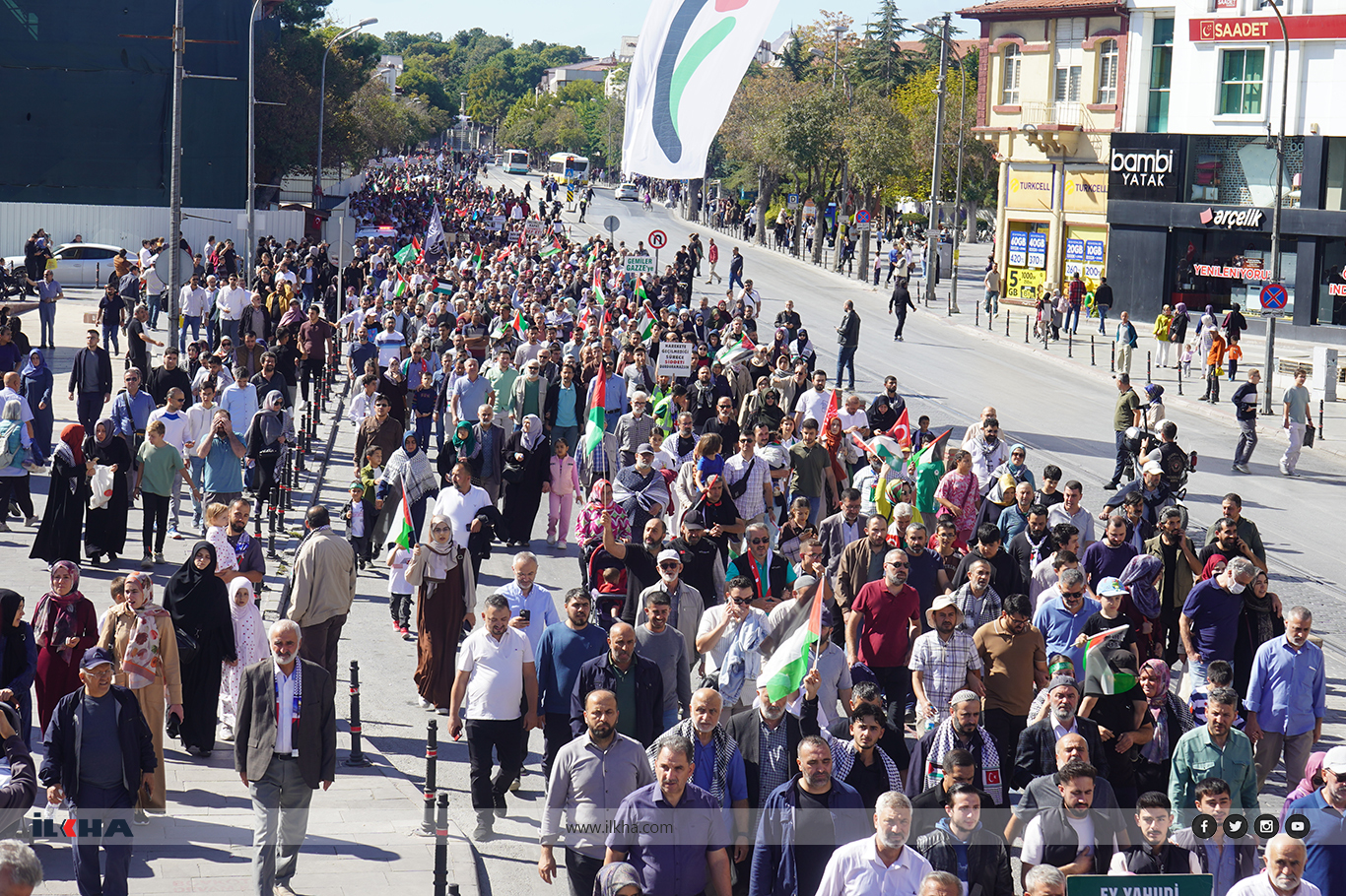 Konya’da Aksa Tufanı Operasyonu’nun 3. yılı dolayısıyla binlerin katılımıyla yürüyüş gerçekleştirildi