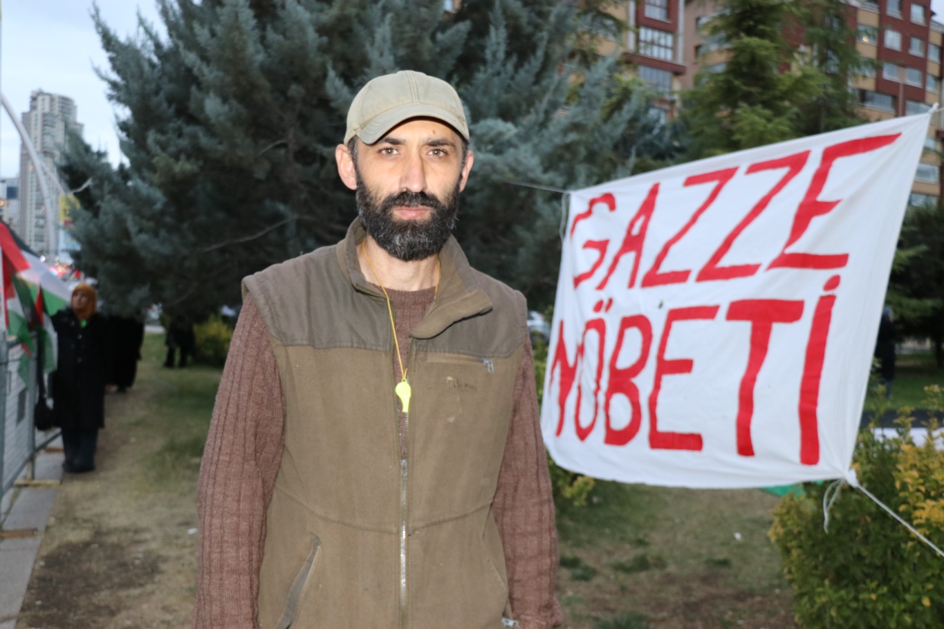 Gazze nöbetine ilişkin İLKHA muhabirine konuşan Aktivist Yusuf Şanlı, "Gazze işgali deklare edildikten sonra nöbetimize başladık. 50 gündür istikrarlı bir şekilde buradayız. Büyükelçiliği rahatsız ediyoruz. Burada halkla bütünleşiyoruz. Korna çaldırmaya çalışıyoruz. Tabi dün itibariyle bu gece HAMAS kabul etti. Kabul etti etmesine ama imzalanan kadar buradayız. Nöbetimize devam edeceğiz. Tabi bu anlaşmanın da mahiyetine bakmak lazım. Aslında biz bunu bir teslim tutanağı olarak tanımlıyoruz. Bu ayıp HAMAS'ın değil bütün ümmetin ve emperyalizme siyonizme uşaklık eden liderlerin ayıbıdır. Onlar HAMAS'ı bu ateşkes kararını imzalamaya zorladılar. Allah sonlarını hayretsin. Hepimizin sonunu hayretsin diyoruz. Nöbetimize devam ediyoruz." dedi. (İLKHA)