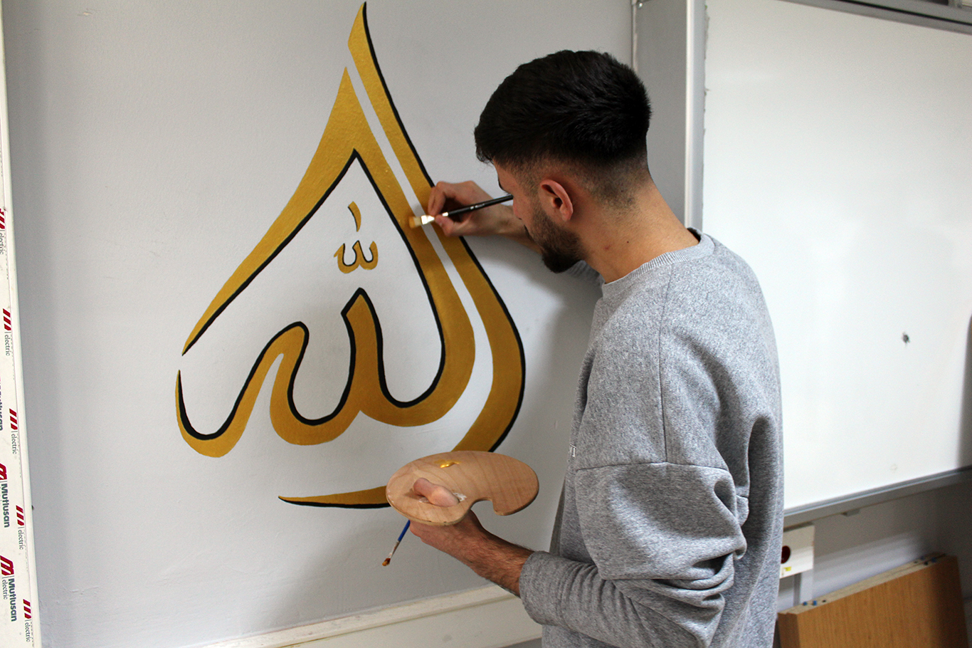 Ağrı'daki İmam Hatip Okul duvarları hat sanatı ile süsleniyor.