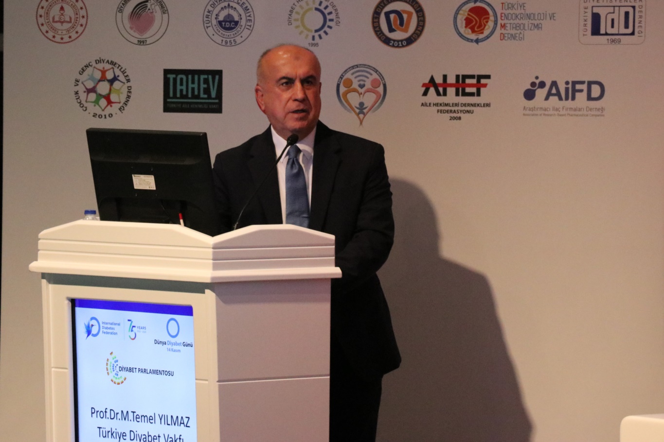 Türkiye Diyabet Vakfı 2. Başkanı Prof. Dr. Temel Yılmaz, 14 Kasım Dünya Diyabet Günü’nün tüm ülkelerde geniş kapsamlı etkinliklerle kutlandığını belirterek diyabetin giderek büyüyen bir sağlık sorunu olduğuna dikkat çekerek, "Diyabet, dünyanın en büyük sağlık sorunlarından bir tanesi. International Diabetes Federation-Uluslararası Diyabet Federasyonu (IDF) 600 milyon diyor ama bana göre 900 milyonun üzerinde bir hasta var. Bizim ülkemizde yaptığımız hesaplara göre 12 milyonun üzerinde bir hasta var. Yine resmi açıklamalardan da 10 milyon civarında diyabetli hastalığı nedeniyle ülkemizde diyabetli hastalar tedavi görüyor, ilaç alıyor. Diyabet iyi izlenmediği zaman çok ciddi organ hasarıyla gidiyor. Kronik hastalıklar içinde ilk 6 sırada olan ölüm nedenlerinden. Bunların içinde 4 tanesinin bir numaralı sebebi özellikle kardiyovasküler hastalıklar, hipertansiyon, felç, obezite, kronik böbrek yetersizlikleri. 20 yaş üstü görme kayıpları, trafik kazalarından sonra bacak ampütasyonu… Bunların hepsinde diyabet bir numaralı neden." dedi.