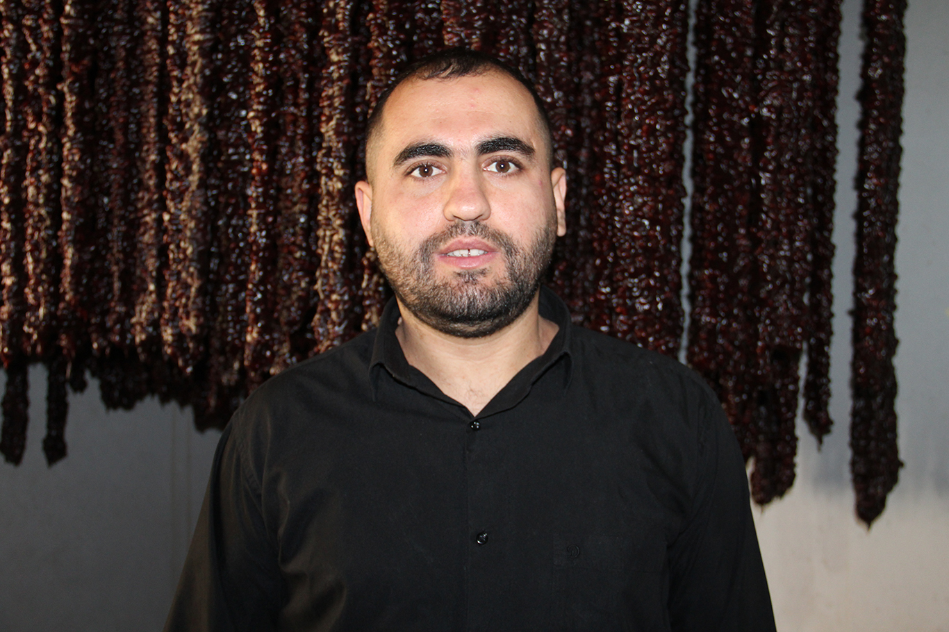 "Biz senelerdir cevizli sucuk üretimini yapıyoruz, elhamdülillah. Bu sene de iki-üç aydır başladık, bir iki-üç ay daha sürecek. Yerel malzememiz var; yerel ceviz, yerel pekmez, yerel üzüm kullanıyoruz. Orijinal balımız da var. Her zaman yerel ürünlerle, doğal şekilde yapıyoruz."