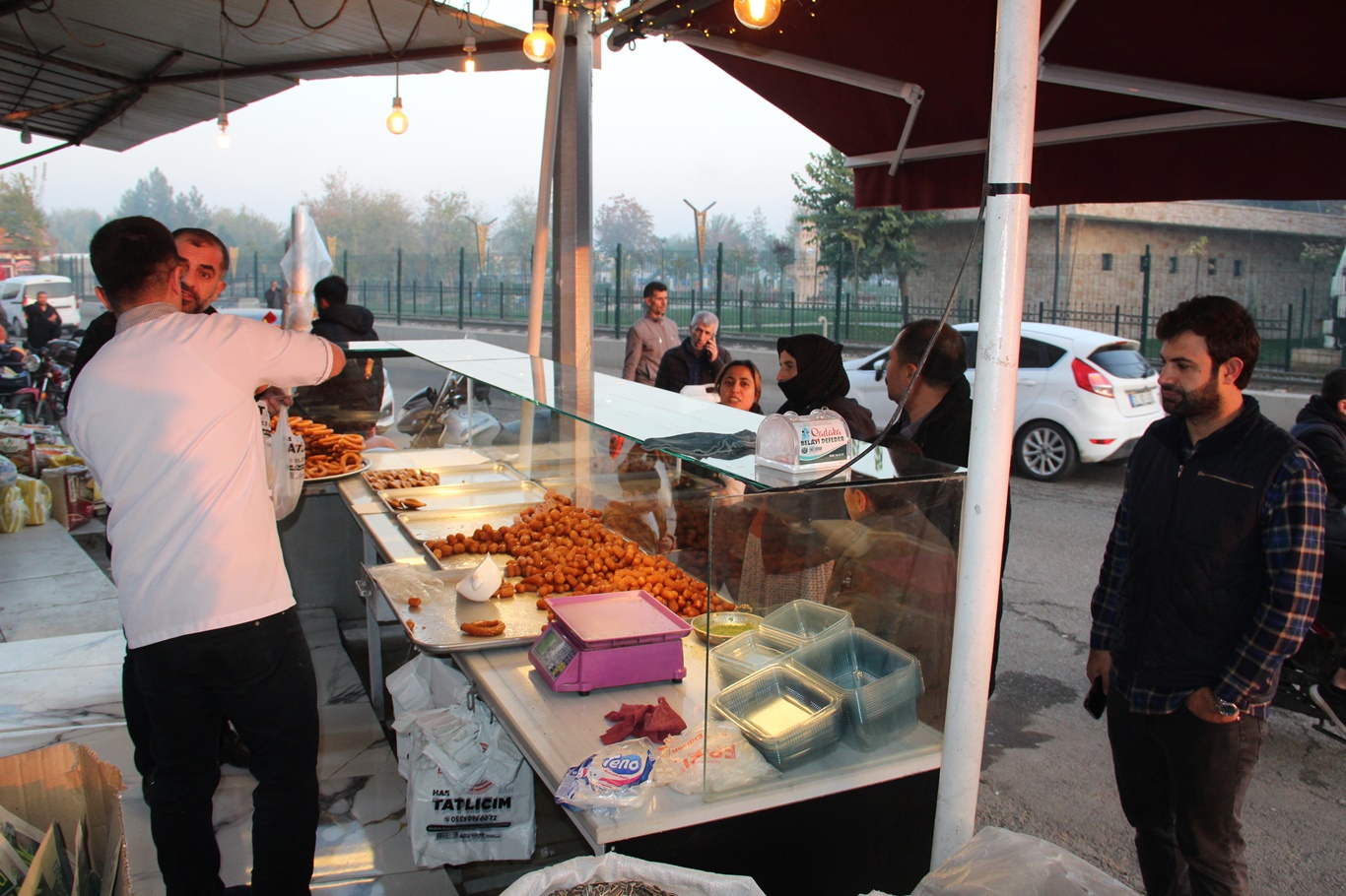 Sirek, iri tulumba, minik tulumba, uzun halkalar, taş kadayıf ve kaymaklı cevizli gibi çeşitlerle müşterilerini ağırladıklarını söyledi. Vatandaşlar da tatlıları hem evlerinde tüketmek hem de misafirlerine ikram etmek için tercih ediyor.