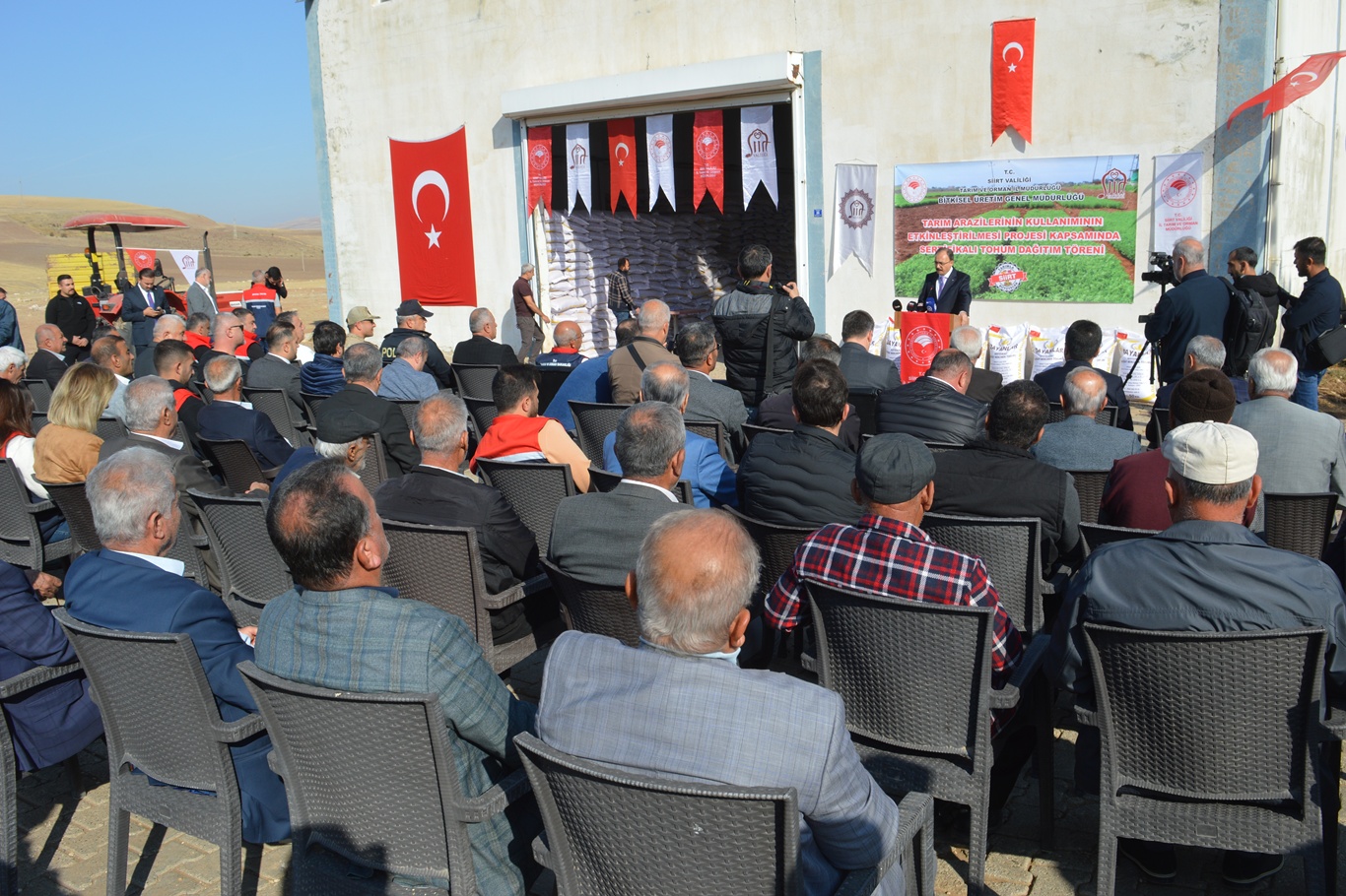 Vali Kızılkaya, "Bugün burada, ilimiz tarımının geleceği açısından büyük bir adım olan 'Kırmızı Mercimek Üretimini Geliştirme Projesi'nin tohum dağıtım töreninde sizlerle bir arada olmaktan büyük bir memnuniyet duyuyorum. Bu proje sadece üreticimize sağlanan bir destek değil; aynı zamanda ülkemizin gıda güvenliğine, kırsal kalkınmaya ve sürdürülebilir tarım vizyonuna güçlü bir katkıdır." dedi.