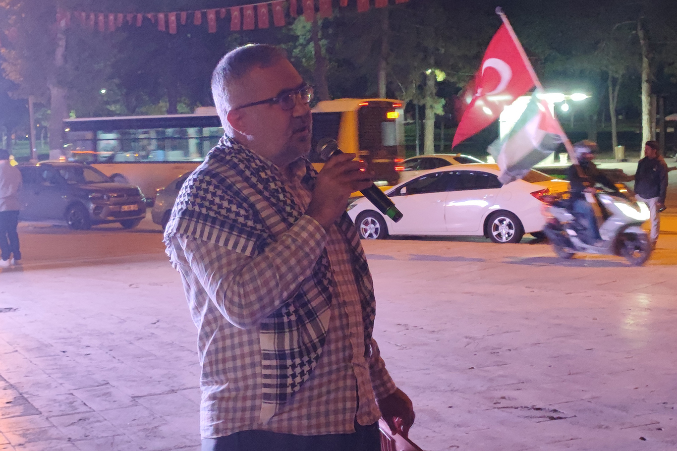 Battalgazi Belediye Başkanı Bayram Taşkın ise, yapılan protestonun bir saf belirleme olduğunu ifade ederek, "Bugün burada safımızı belirlemeye geldik. Peygamber Efendimiz bir Hadis-i Şerif'te şöyle buyuruyor: 'Bir kötülük gördüğünüzde elinizle müdahale edin, buna gücünüz yetmiyorsa dilinizle müdahale edin, buna da gücünüz yetmiyorsa kalbinizle buğz edin ki bu da imanın en zayıf noktasıdır.' Şu anda fiili olarak elimizden bir şey gelmiyor. Kardeşlerimize dua gönderiyoruz. En azından siyonist kafire kalben buğz ediyoruz, safımızı belirliyoruz. Bugün dünyanın gözü bu filoda. Bu filonun içerisinde Müslim ve gayrimüslim, insanlık adına biraz merhamet taşıyan kim varsa dua ediyor, gayret gösteriyor. Bu artık Müslümanlığın meselesi olmaktan çıktı, bir insanlık meselesine döndü. Filoda belki yüzde 70 gayrimüslim var; insanlık adına bu mücadelenin bir parçası oldular." diye konuştu.