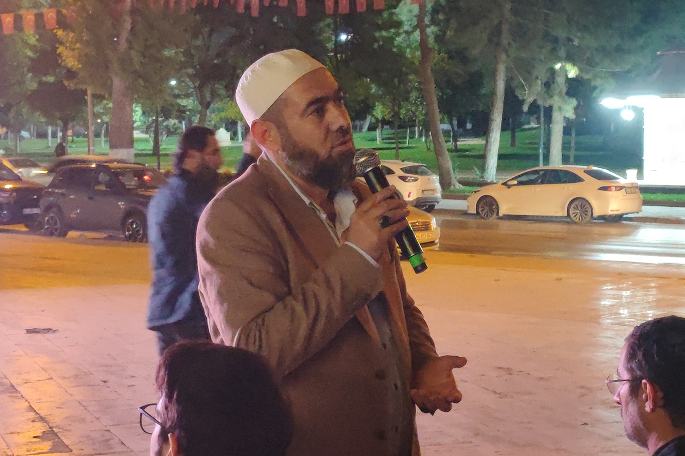 Burada Kur'an-ı Kerim tilaveti ile başlayan program, imam hatip Talha Tuğrulca'nın yaptığı konuşma ile devam etti. Tuğrulca, İslam ülkelerinin askeri gücünün yeterli olduğunu ancak yöneticilerin cesaretsizliğini eleştirerek şöyle konuştu: