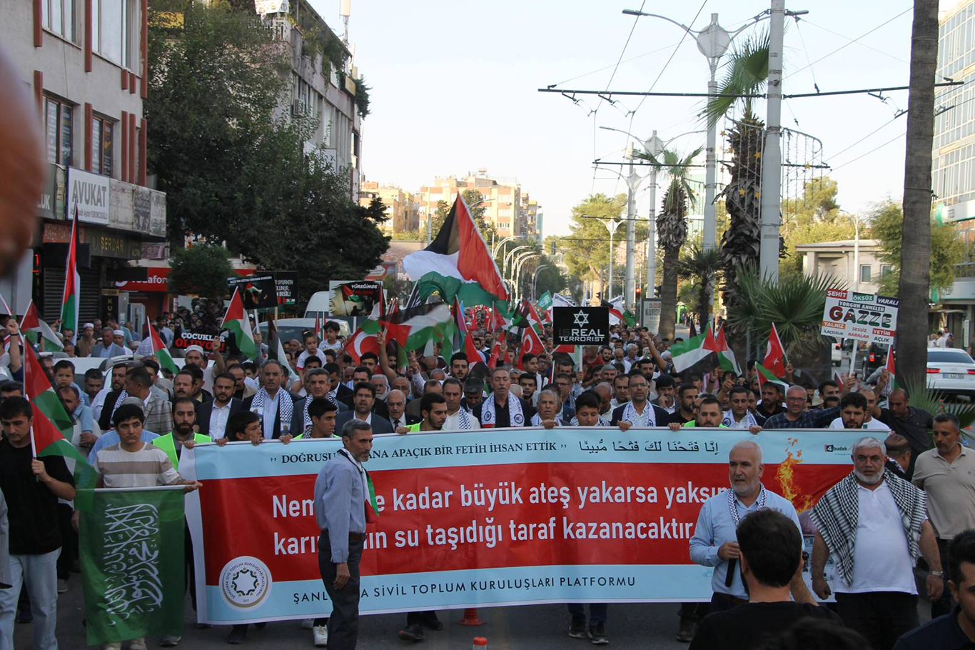 Şanlıurfa’da Aksa Tufanı Operasyonu'nun yıl dönümünün yaklaşması dolayısıyla düzenlenen programda, Gazze halkına destek olmak amacıyla yürüyüş, dua ve basın açıklaması gerçekleştirildi.
