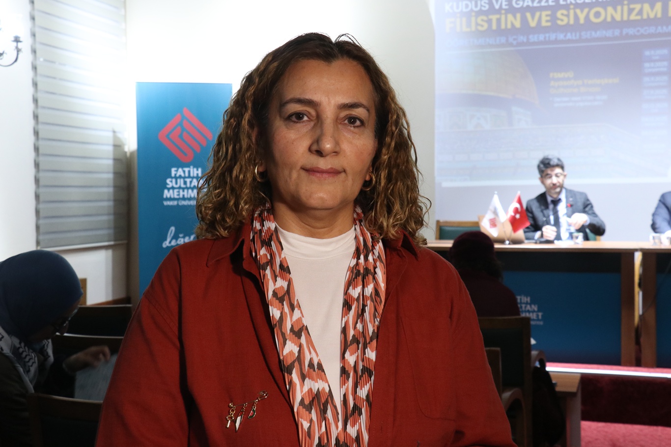 Fatih Sultan Mehmet Vakıf Üniversitesi (FSMVÜ), Filistin davasının okullarda daha iyi anlatılması adına gönüllü öğretmenlere yönelik "Kudüs ve Gazze Ekseninde Filistin ve Siyonizm Meselesi" başlığı altında bir dizi eğitim semineri veriyor. Öğretmenler, aldıkları eğitimlerin ardından Filistin davasını öğrencilerine daha doğru bir şekilde anlatma imkanı bulacak.