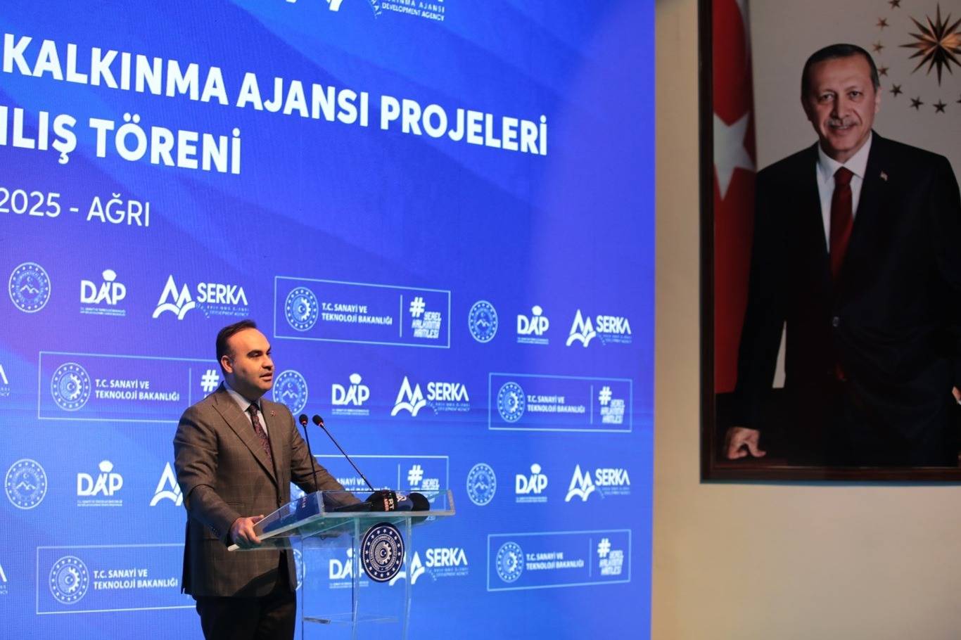 Sanayi ve Teknoloji Bakanı Mehmet Fatih Kacır, Ağrı Bölge Kalkınma İdaresi ve Kalkınma Ajansı projelerinin açılış törenine katılmak üzere Ağrı'ya geldi.