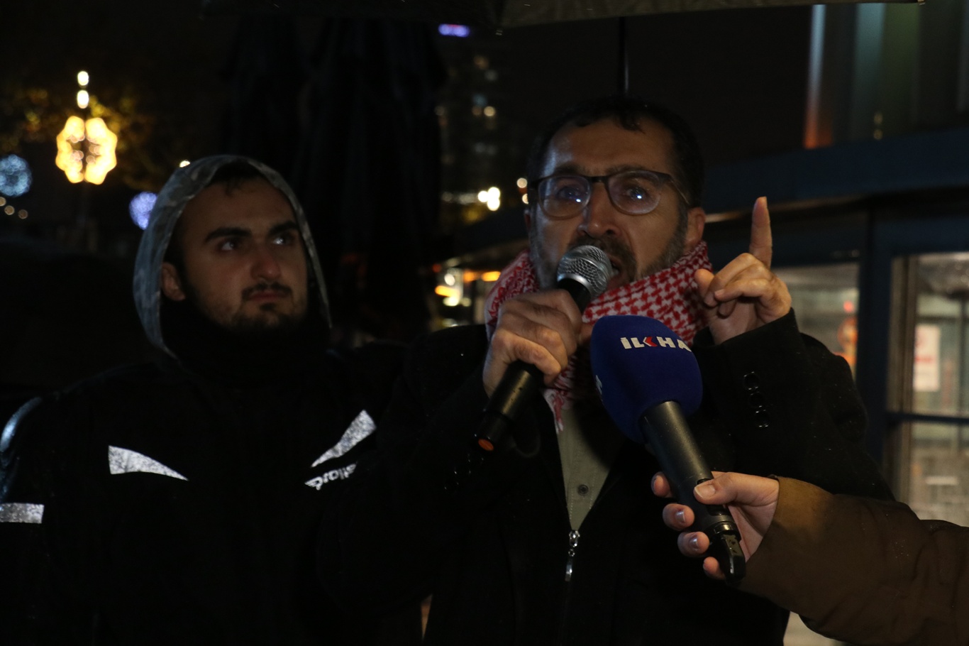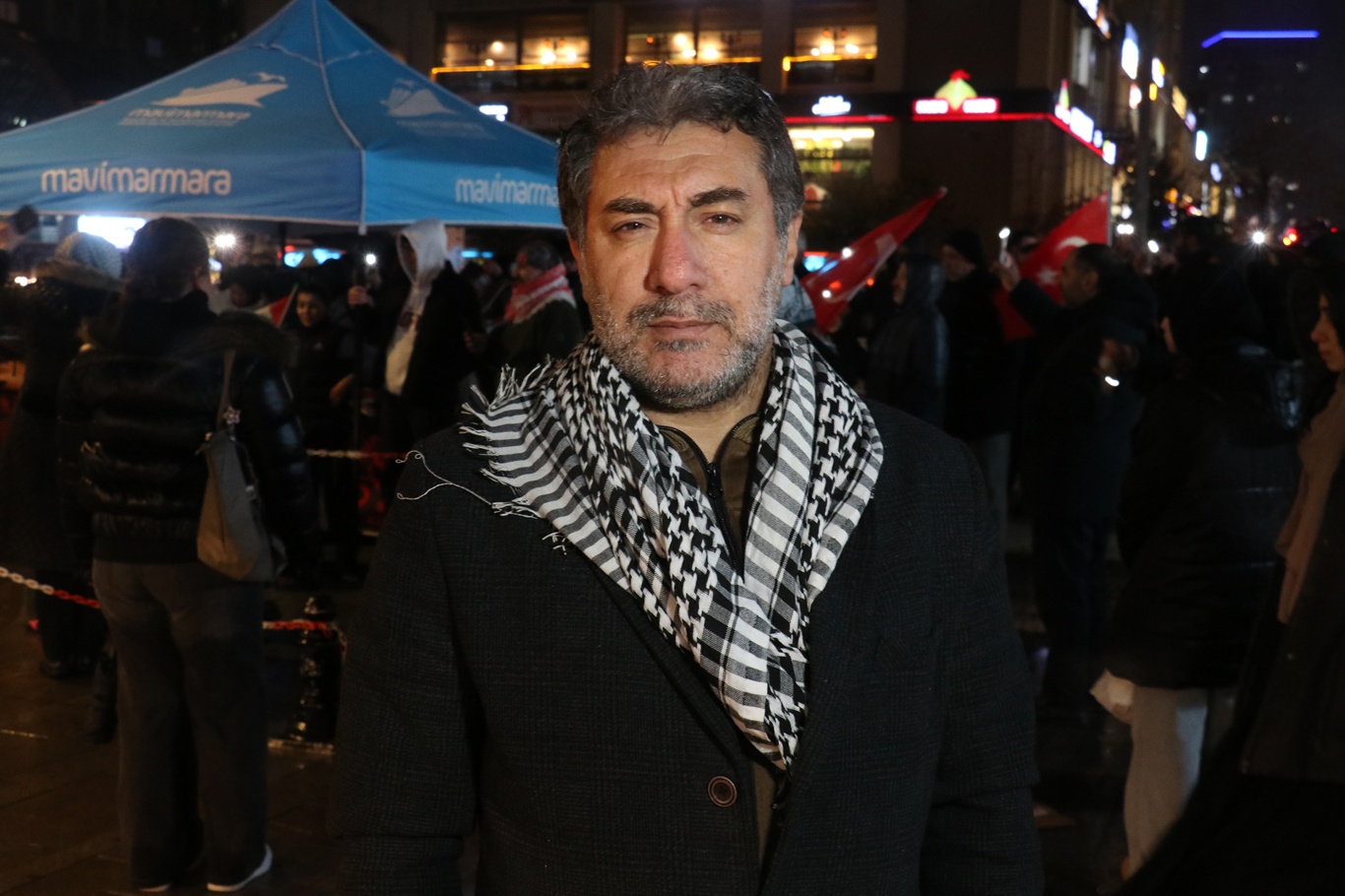 Yel, "Allah razı olsun… Kardeşlerimiz 42 gündür insanlık onuruna sahip çıkma adına burada protesto gösterisinde bulunuyorlar. Bir duruş ortaya koyuyor, mazlumların sesi ve soluğu olmaya çalışıyorlar. Ancak maalesef gelin görün ki; Kanada'dan Avustralya'ya kadar insanlar onuruna sahip çıkma adına farklı dillerden, farklı ideolojilerden farklı kültürlerden insanlar bu acıya sahip çıktıkları halde bizim ülkemizde Müslüman evlatlarıdır dediğimiz bazıları ise saygılarla bu Filistinli mazlumların feryatlarına kulak tıkıyorlar. Siz bu feryatları duymasanız bile bu çığlıkları duymasanız bile insanlık onuruna sahip çıkma adına biz asla Gazze'yi unutmayacağız. Gazze'nin sesi ve soluğu olacağız. Zalimlerden yana olmayacağımız gibi zalimlere meyledenlerin karşısında da olacağız. Evet, sırf onurlarını birkaç kuruş paraya satan insanlara yazıklar olsun. İnsanların kanı akarken, bebekler paramparça olurken ve bugün çadırların altında ve bugün o yağmurun o soğuğun altında hayatta kalma verirken, bir lokma ekmek, bir kaç kuruş para için İsrail'e destek olmak, onların şubelerini açmak, onların temsilciliğini yapmak kesinlikle kabul edilebilir bir durum değildir." şeklinde konuştu