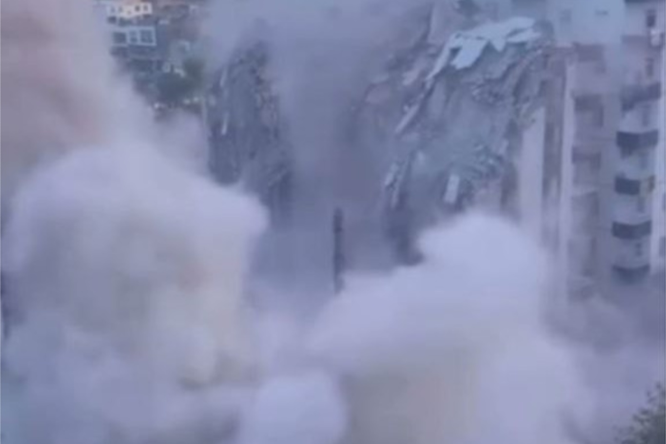 Kontrollü yıkım sırasında aniden çöken yapının etrafı toz bulutuyla kaplanırken, olay cep telefonu kamerasına yansıdı.