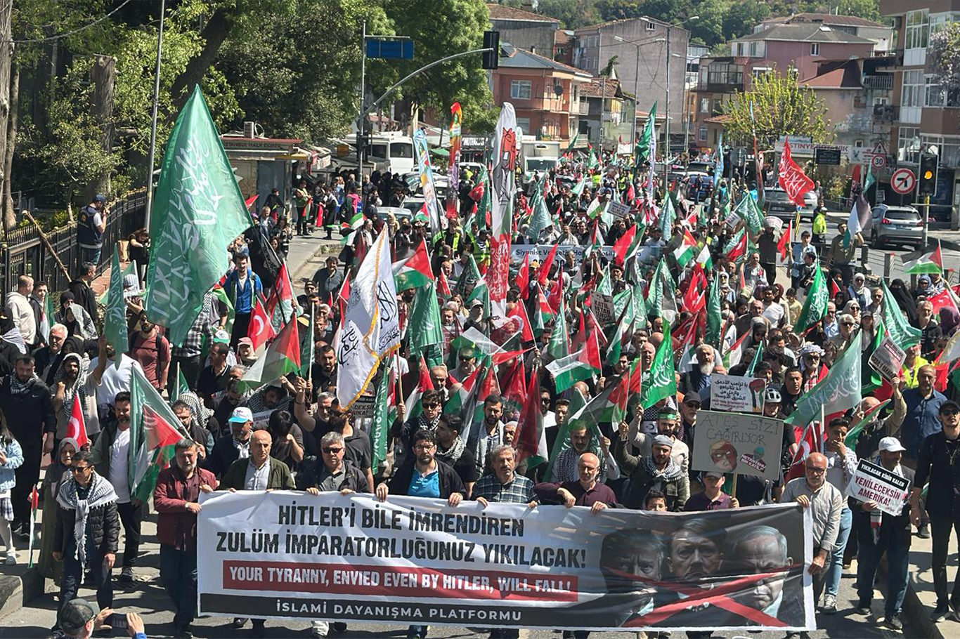 Çok sayıda STK'nın desteğiyle öğle namazında Sarıyer Mahmut Çavuş Camii'nde bir araya gelen binlerce kişi, ellerinde taşıdıkları pankart ve dövizler ile ABD konsolosluğuna kadar yürüdü.