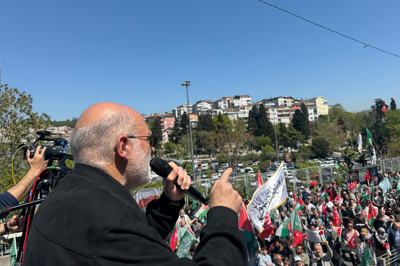 Gazze'de katliamlar sürerken Trump'un Ortadoğu'ya ziyaretler gerçekleştirmesinin kabul edilemez olduğunu vurgulayan Kaya, "Rabbimize karşı adil şahitlik yapmak için meydanlardayız. Zalime karşı olan tavrımızı göstermek temel vazifemizdir. 'Sloganlarla tekbirlerle yürüyüşlere bir şey olmaz' diyenler 2 bin kilometre ötede hedef alınan Vicdan Gemisi'ni de mi görmüyorlar? Siyonistler bu yürüyüşlerden, gösterilerden, Rumeysa Öztürk'ten, Vicdan Gemisi'nden rahatsız olmasa tüm bunları neden susturmaya çalışsın! 19 aydır her türlü suçu ve vahşeti işlediler. ABD başta olmak üzere tüm zalimlerin desteğini aldılar ama direnişe boyun eğdiremediler. Tek bir esirlerini bile geri alamadılar. Küçücük Gazze'de bombalanmadık yer bırakmadılar ama hala tünellere giremediler. O tünellerden yükselen direniş zalimlere boyunun ölçüsünü gösteriyor. Gazze'yi konuşmak ve gündemleştirmek zorundayız. Gazze için boykotu genişletip dua ve infaklarımızla direnişe destek olalım. Trump'ı coğrafyamızda istemediğimizi göstermek için önümüzdeki hafta gerçekleştireceği Ortadoğu ziyareti sebebiyle sesimizi daha fazla çıkartalım. Rabbimiz direniş ehlini korusun ve mücahitlere zafer nasip eylesin." şeklinde konuştu.
