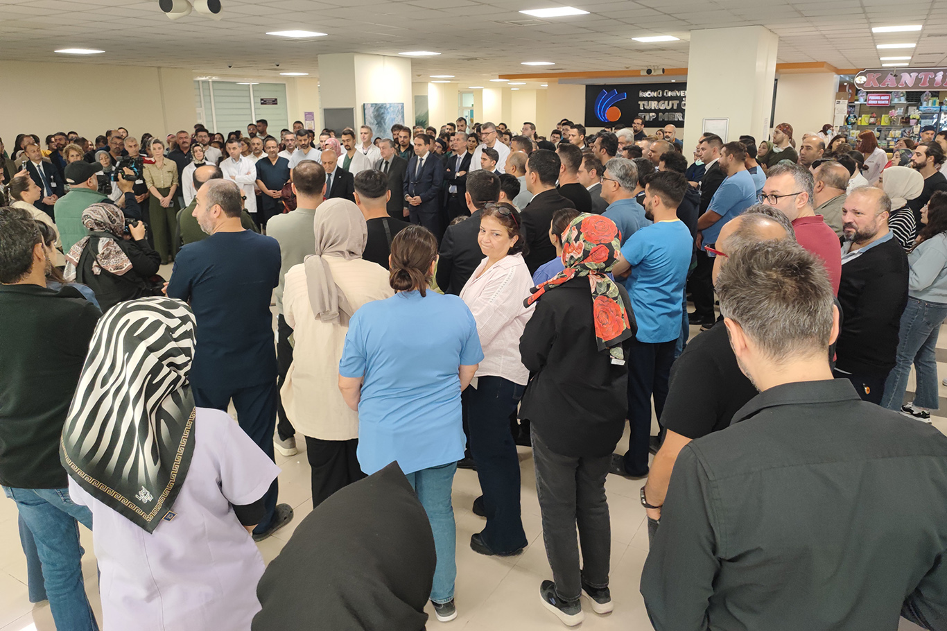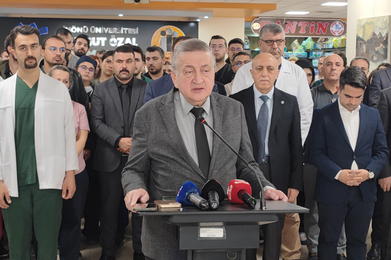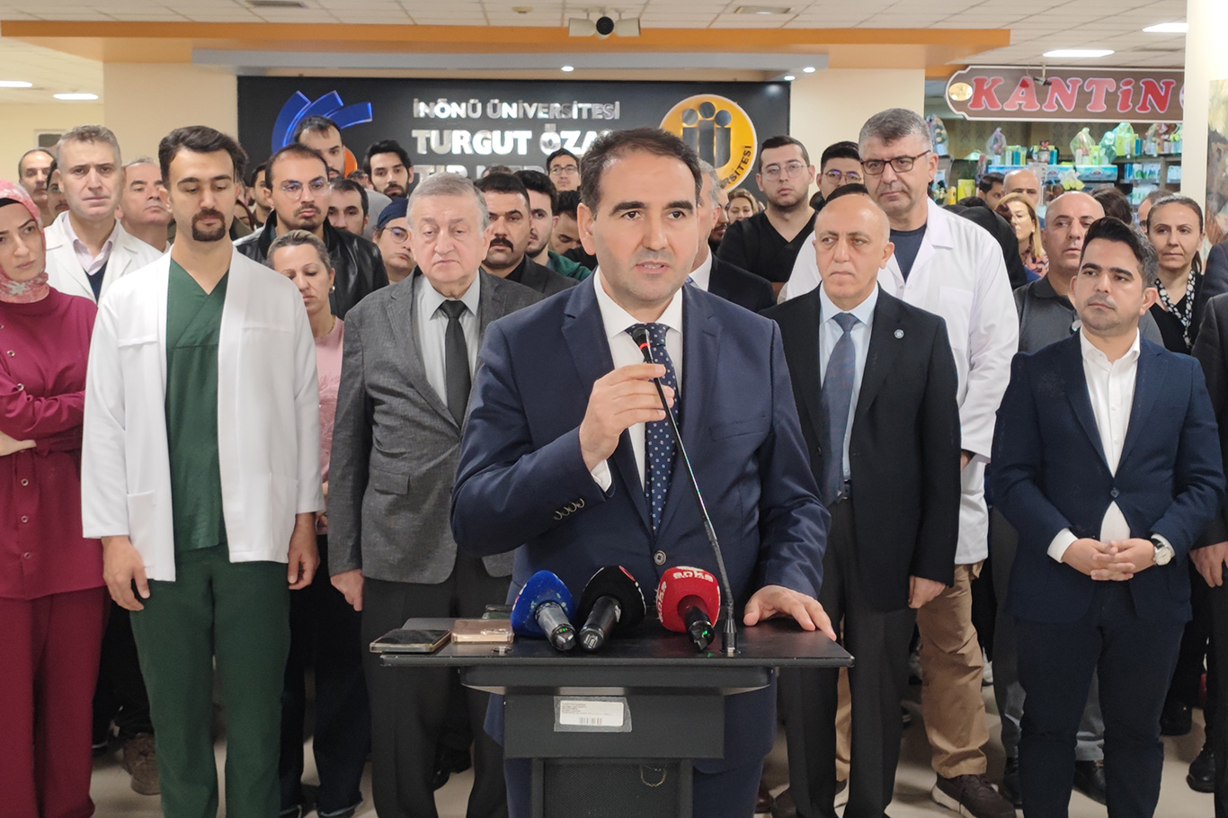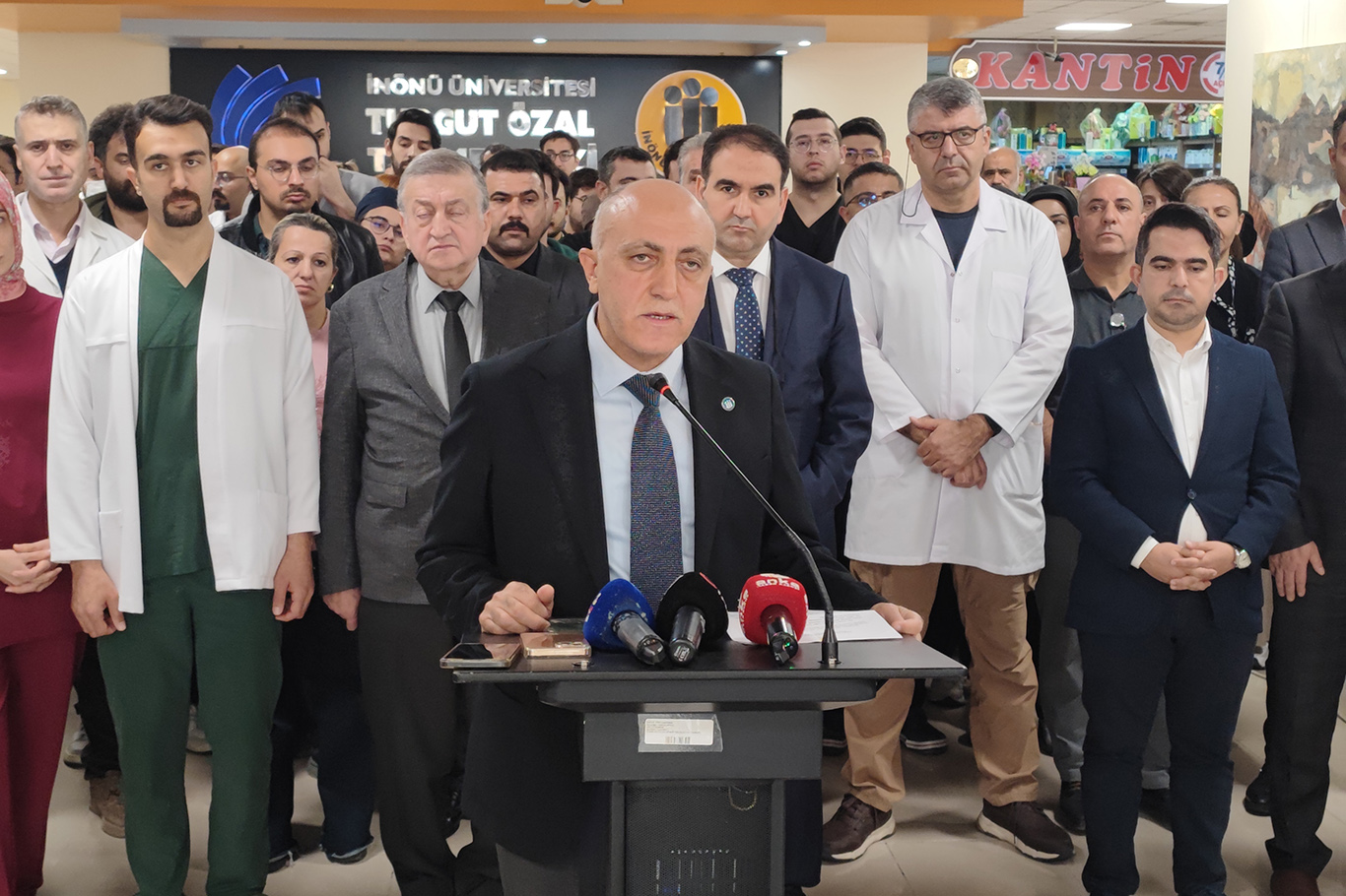 Turgut Özal Tıp Merkezi Başhekimi Doç. Dr. Erol Karaaslan, konuşmasında sağlıkta şiddetin hiçbir gerekçeyle kabul edilemeyeceğini vurgulayarak, "Dün plastik cerrahi polikliniğimizde genç bir hekimimizde uygulanan şiddeti protesto etme amacıyla toplanmış bulunmaktayız. Görevi başında genç bir hekim olan kardeşimiz hiç hak etmediği şekilde bir şiddete maruz kalmıştır. Bu şiddet bizi çok derinden üzmüştür. Sağlık çalışanları insan yaşamını korumak ve iyileştirmek için fedakârca görev yaparken, hiçbir şekilde fiziksel ya da sözlü şiddetin muhatabı olmamalıdır. Hekimlerimiz ve tüm sağlık personelimiz, toplum sağlığı için gece gündüz demeden özveriyle çalışmaktadır. Bu emeklerin karşılığı asla şiddet olamaz." dedi.