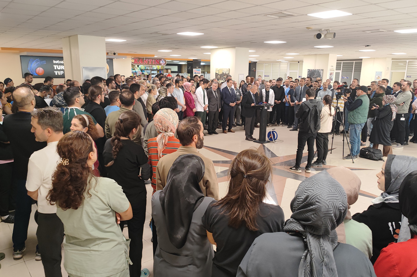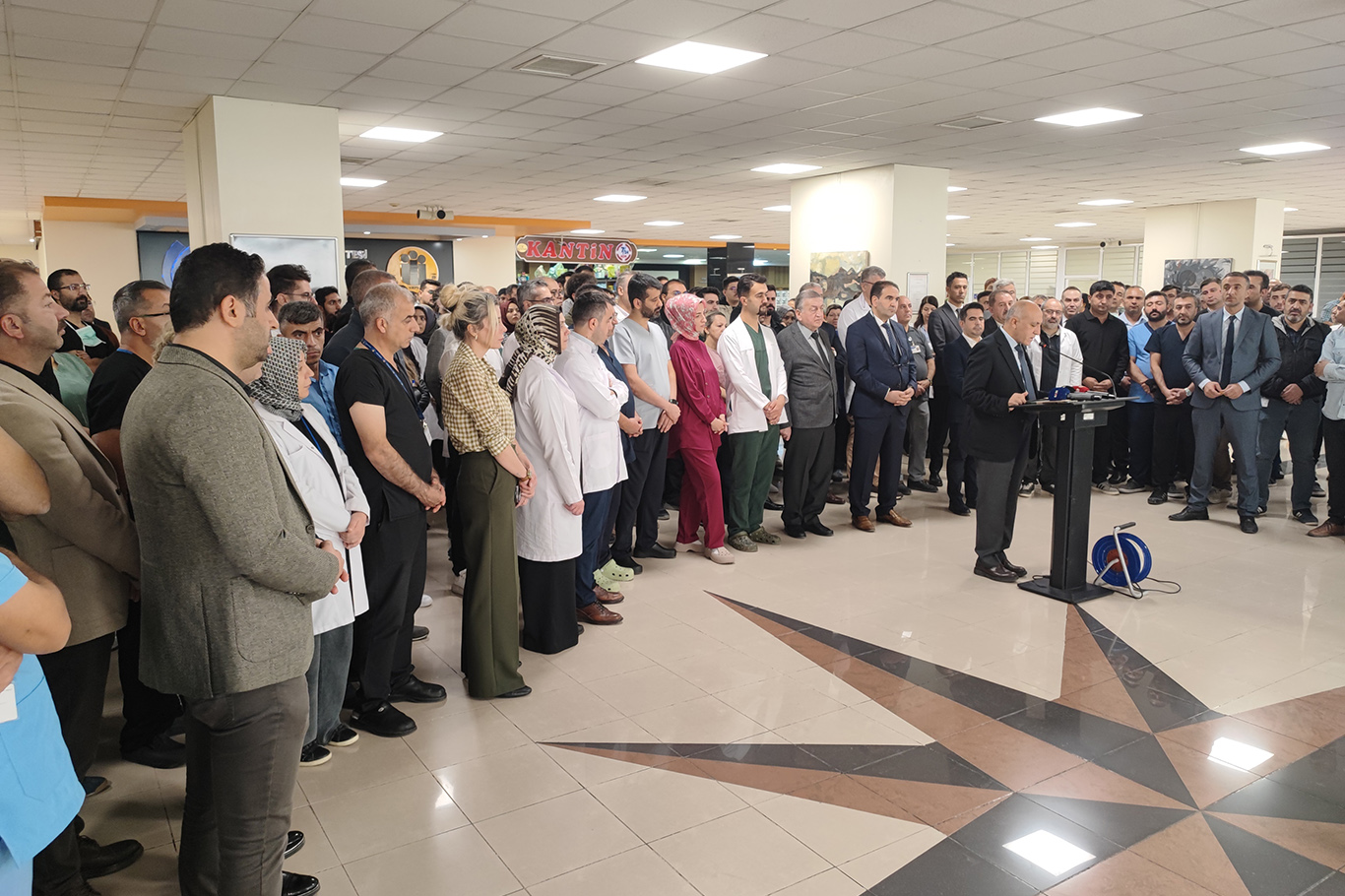 Sağlık çalışanlarına yönelik yapılan saldırıyı kınamak amacıyla tıp merkezinin başhekimlik girişinde basın açıklaması düzenlendi. Basın açıklamasına tıp fakültesi yönetimi, hastane yönetimi, tabip odası temsilcileri, akademisyenler ve çok sayıda sağlık çalışanı katıldı.