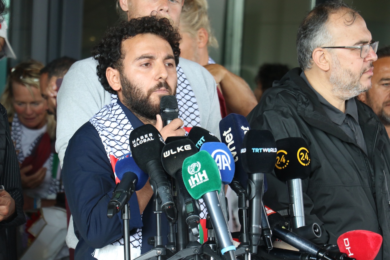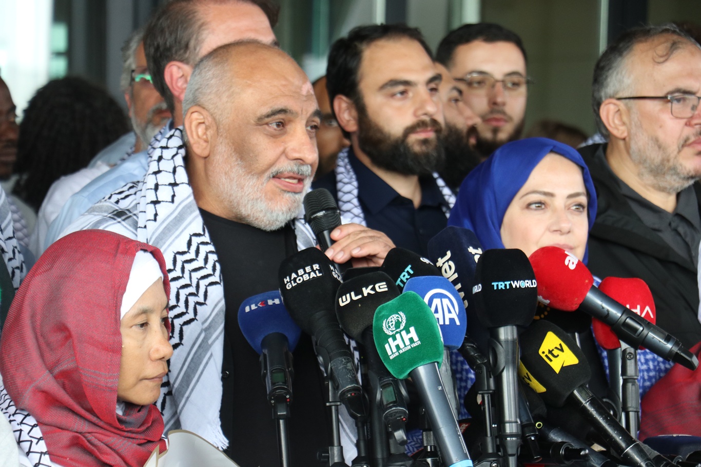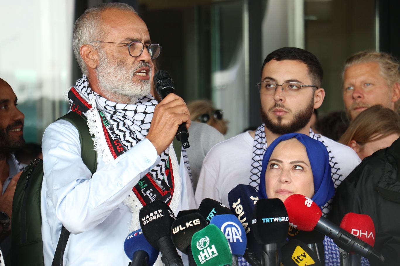Küresel Sumud Filosu katılımcısı olan ve şimdiye kadar işgal zindanlarında kalıp bugün yapılan seferle Türkiye'ye getirilen Dr. Aziz Gani, "Öncelikle bize gösterdiğiniz ilgiden dolayı teşekkür ediyorum. Bu direnişin başarıya ulaşması ancak sokakların, meydanların gür sesi ile mümkün olacaktır. İkinci olarak; bizler gönüllü bireyler olarak Gazze'ye yardım için gittiğimizden dolayı günlerce esir tutulduk. Belki birkaç gün kaldık ama on binlerce Filistin'in, yüzlerce bebeğin çığlıklarını günlerce duyduk. Bunu asla unutmamalıyız. Direniş önderlerinden Mervan Bergusi, 45 yıldır işgal zindanlarında bulunuyor. Üçüncü olarak belirtmek istediğim husus ise filoların mutlaka Gazze'ye ulaştırılana kadar mücadelenin devam ettirilmesidir. Son olarak; barışın gerçekleşmesi, ateşkesin sağlanması, esirlerin kurtulması, açlıktan ölümlerin durması dünyada hep birlikte mücadele etmekle olur." diye konuştu. (İLKHA)