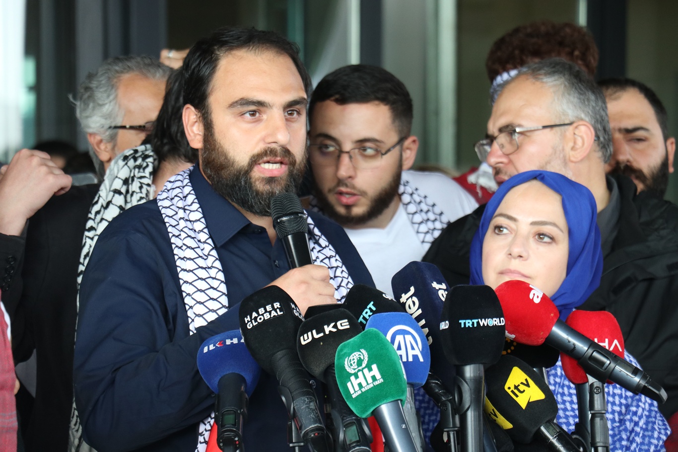 VIP terminali çıkışında basın mensuplarına açıklamalarda bulunan STK temsilcileri, Özgürlük Filosu Koalisyonu temsilcileri ile aktivistler, işgale karşı topyekûn verilen mücadelenin önemine vurgu yaptılar.