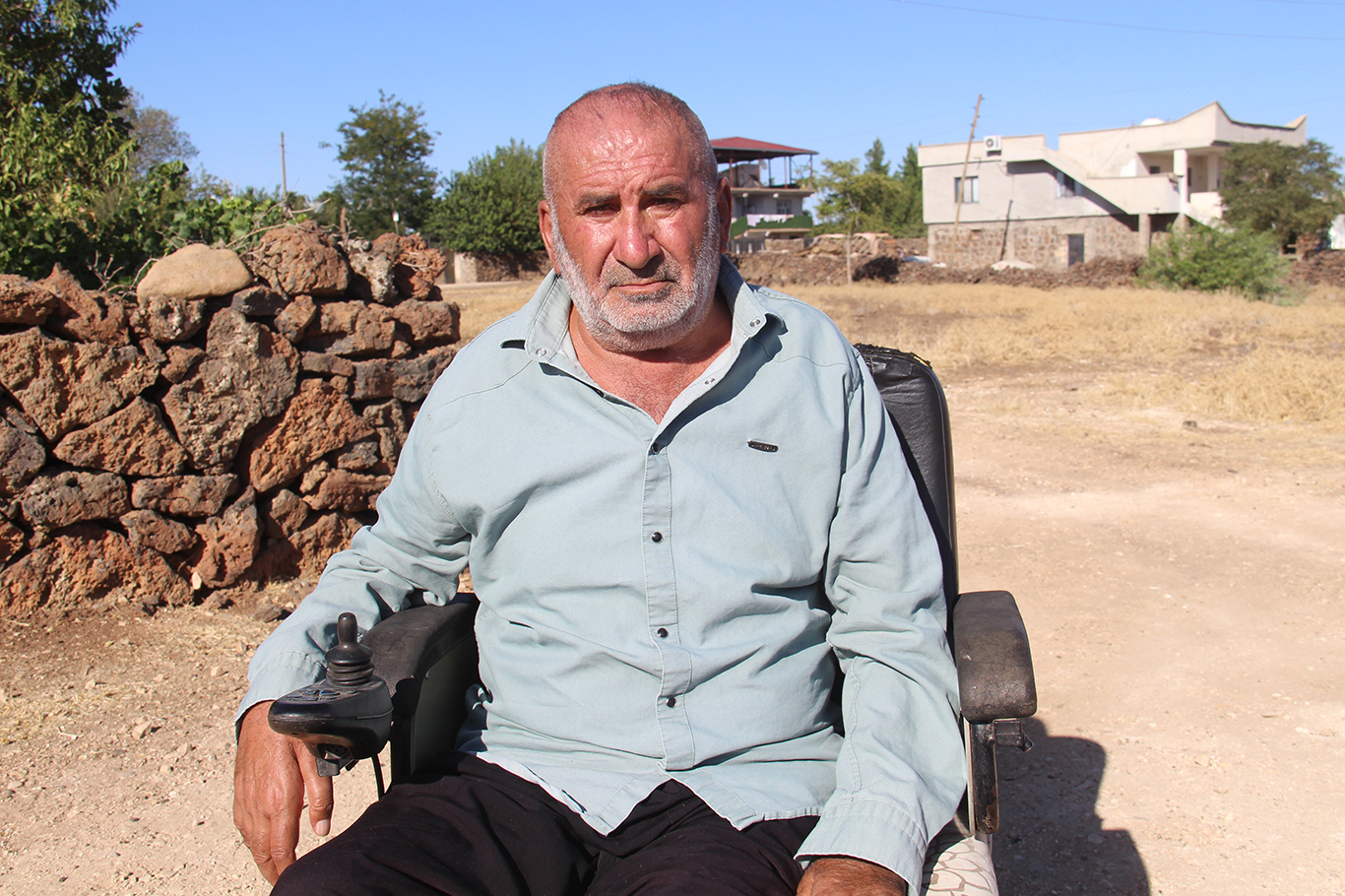 "Yüzde 97 engelliyim, tekerlekli sandalye üzerindeyim. Sandalyemde amasör olmadığından bu yollarda gidip gelirken içim dışıma çıkıyor. Evden camiye, camiden eve giderken veya aileler arası yaptığımız ziyaretlerde sıkıntı yaşıyorum. Özellikle biz engelliler açısından mahalleni yolları oldukça sıkıntılı. Şehir merkezinden mahallenin girişine kadar yol asfalt, mahalle içi ise belediyenin yola döktüğü beyaz çakıl taşlarıdır. Haliyle çakıl taşlı yolda engebelidir."