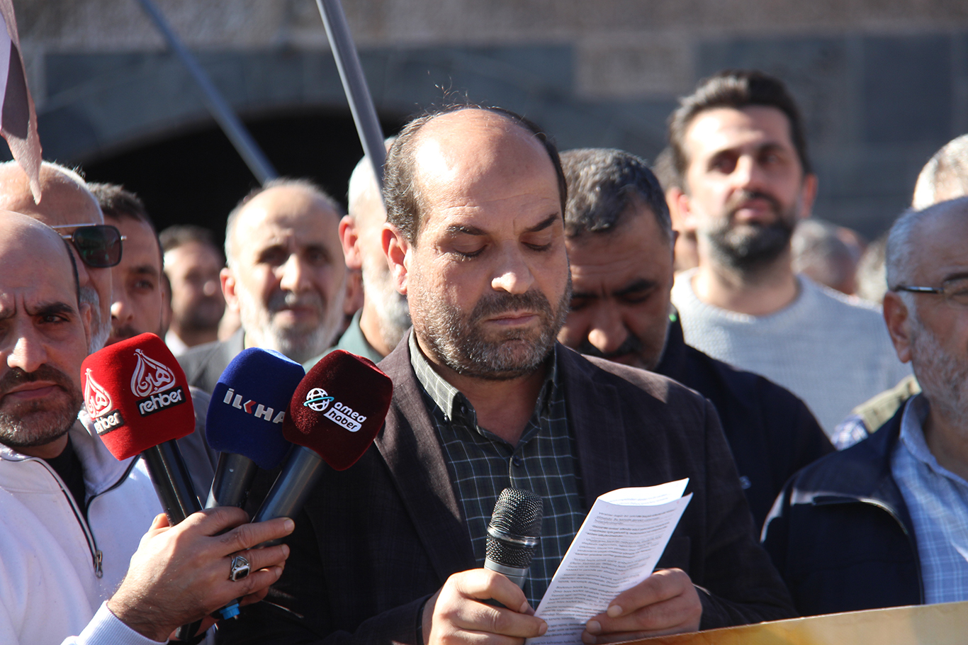 Merkez Sur İlçesi tarihi Ulu Camii önünde Cuma namazı sonrası düzenlenen basın açıklamasında bir konuşma yapan Şehidler Kervanı Platformu Başkanı Ömer Çelik, Yahudilerin ihanetlerini hatırlatarak dün olduğu gibi bugünde onlarla dostluk yapılamayacağını vurguladı.