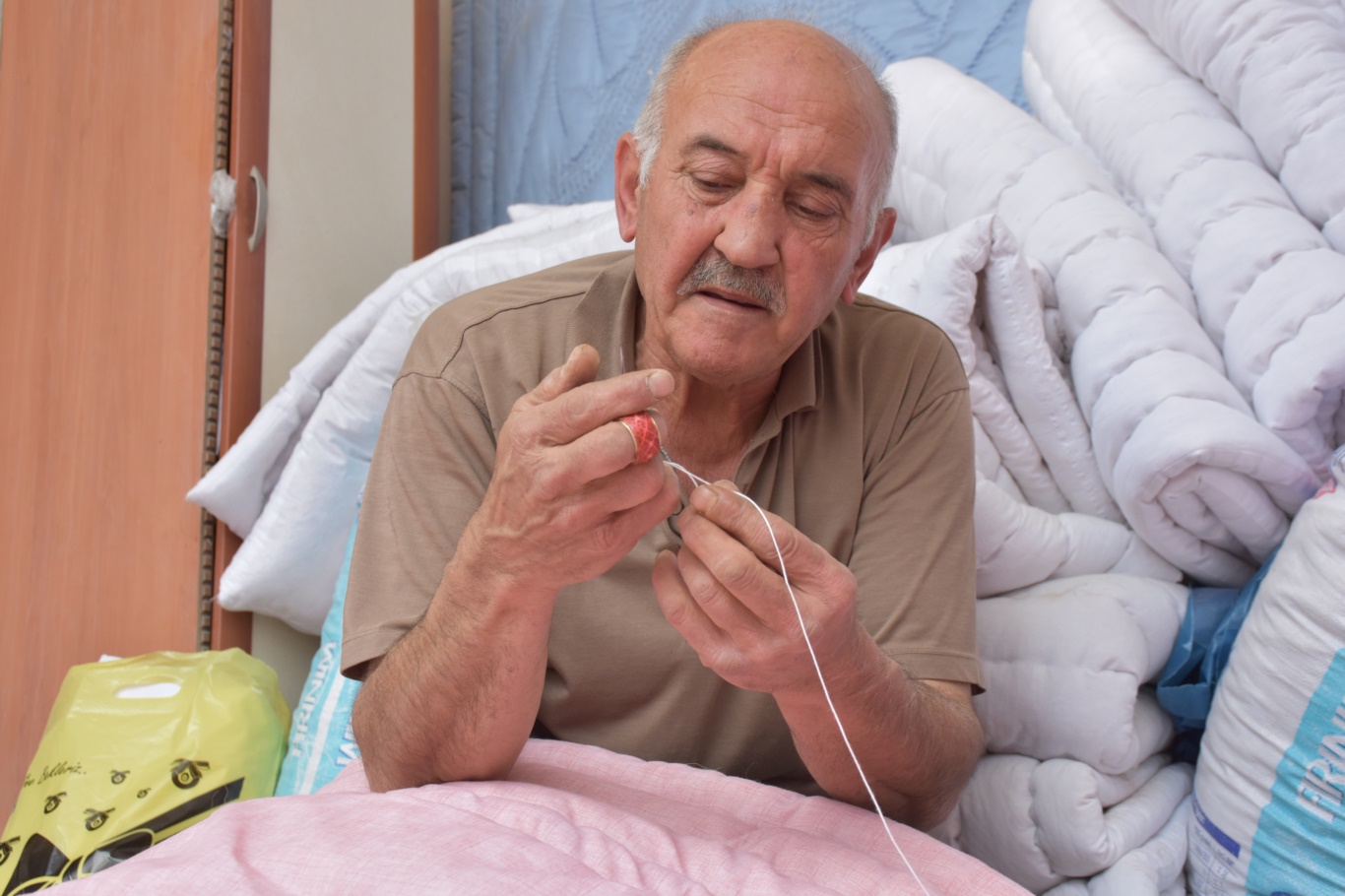 Unutulmaya yüz tutmuş meslekler arasında yer alan yorgancılığı yaşatmak için 53 yıldır mücadele veren yorgan ustası Ramazan Çakmak, geldiği Bitlis'te 7 yıldır yorgan dikiyor.