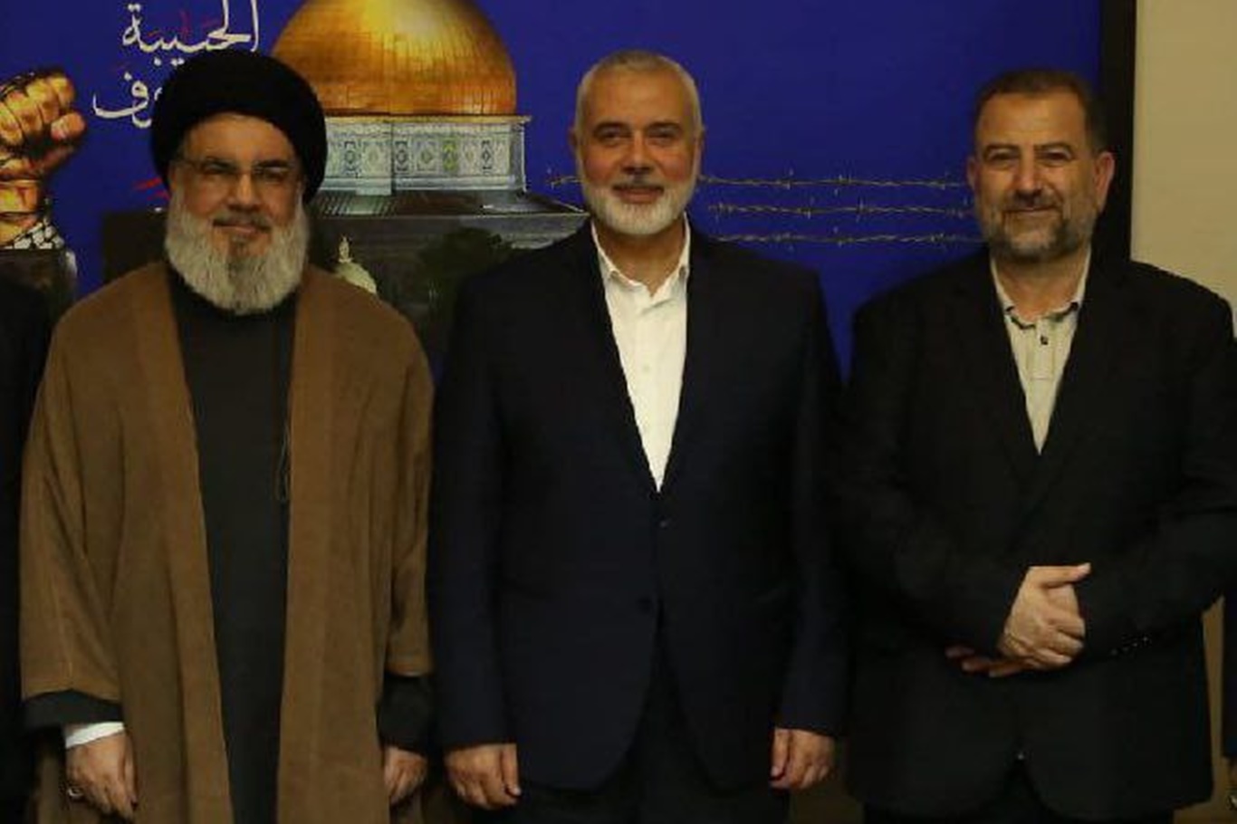Hizbullah Lideri Hasan Nasrallah, HAMAS liderlerinden Şehid İsmail Heniyye ve Şehid Salih el-Aruri ile birlikte