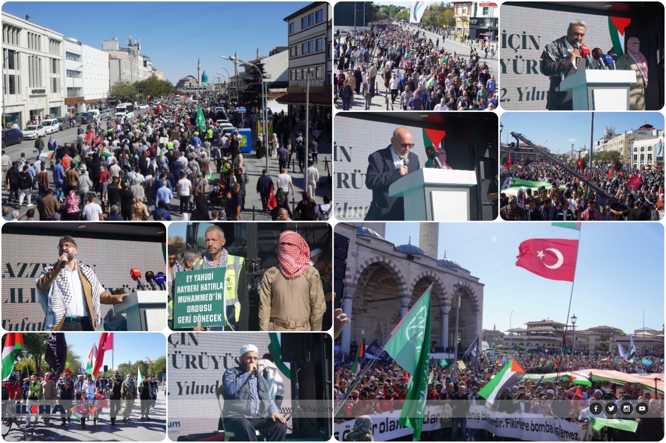 Konya’da Aksa Tufanı Operasyonu’nun 3. yılı dolayısıyla binlerin katılımıyla yürüyüş gerçekleştirildi