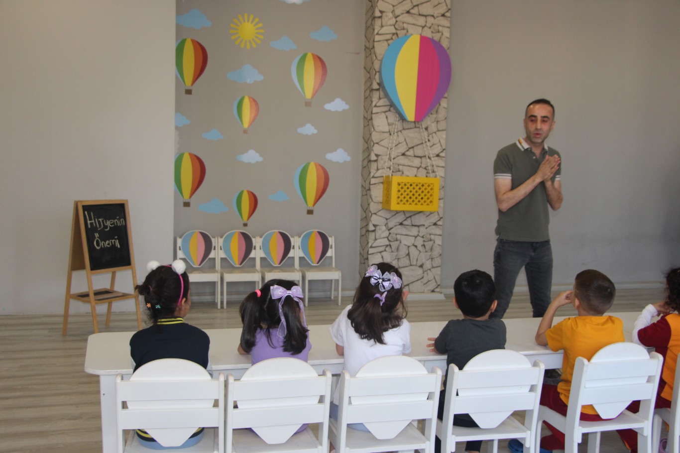 Enfeksiyon Hastalıkları Uzmanı Dr. Zeynel Abidin Demir, gittiği bir kreşte çocuklara hijyenin önemi hakkında eğitim verdi. Demir, çocuklara el yıkamanın doğru yapılışı, bulaşıcı hastalıklar ve mevsim geçişlerinde dikkat edilmesi gerekenler hakkında önemli bilgilendirmelerde bulundu.