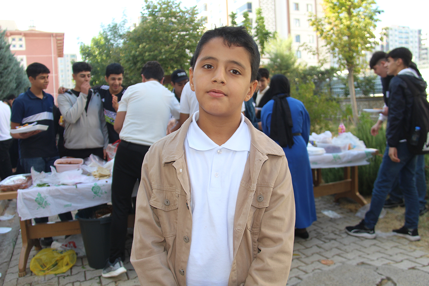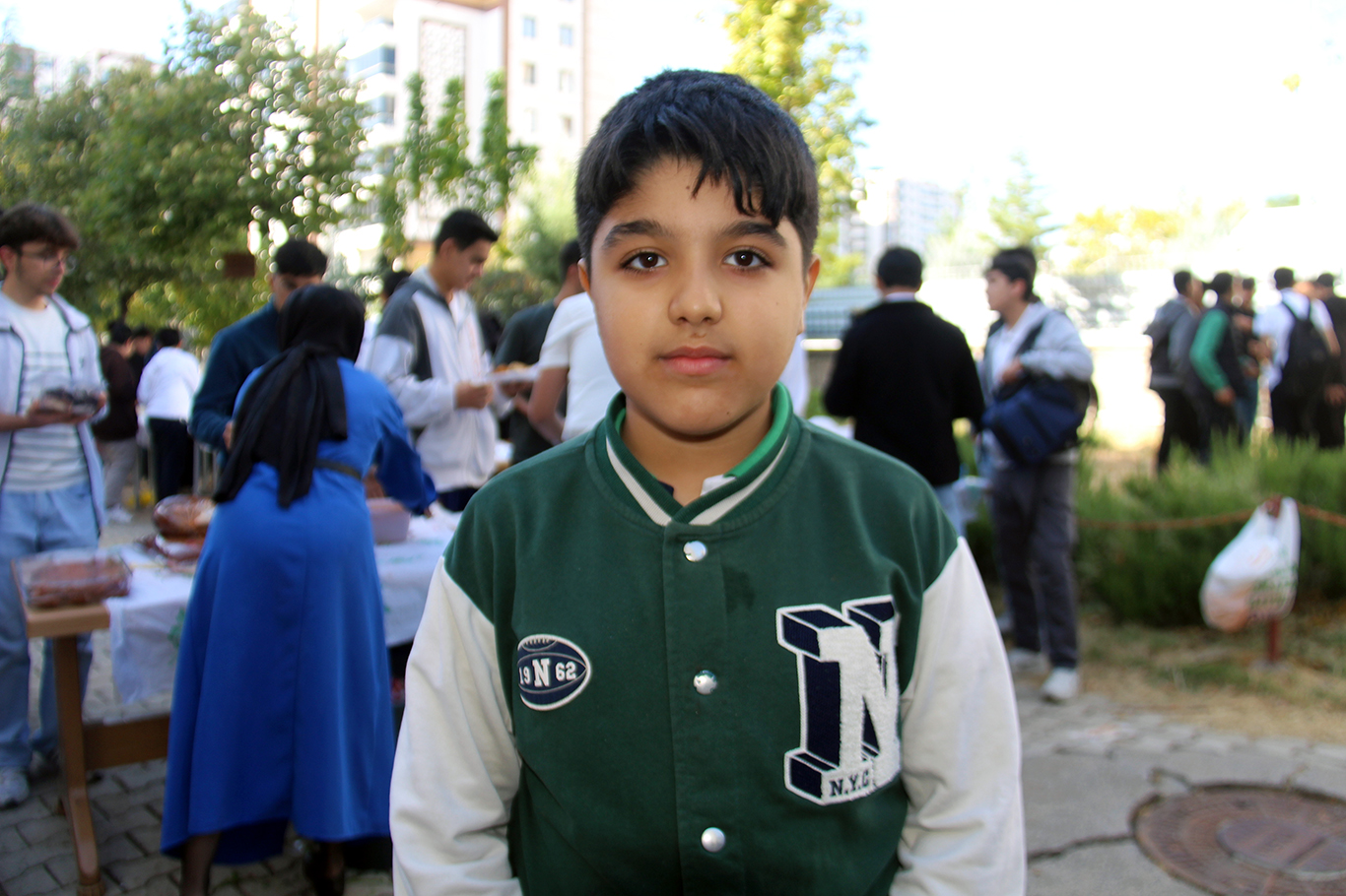 "Bugün burada Filistin'e yardım için kermes düzenledik. Burada herkes evde hazırladığı yiyecekleri getirip satışa çıkarıyor. Bu da Filistin için bağış ve sadaka gibi bir şey oluyor. Bugün Filistin için buradayız. Onlar okula gidemezken bizler okul okuyabiliyor, onlar yiyip içemezken bizler yiyip içebiliyoruz. Onlar aileleriyle kalamıyor, rahat uyuyamıyorlar. Her gün israil belası yüzünden onların başına bir sıkıntı geliyor. İnşallah Allah o görünmez askerlerini gönderir de israili yok eder." (İLKHA)