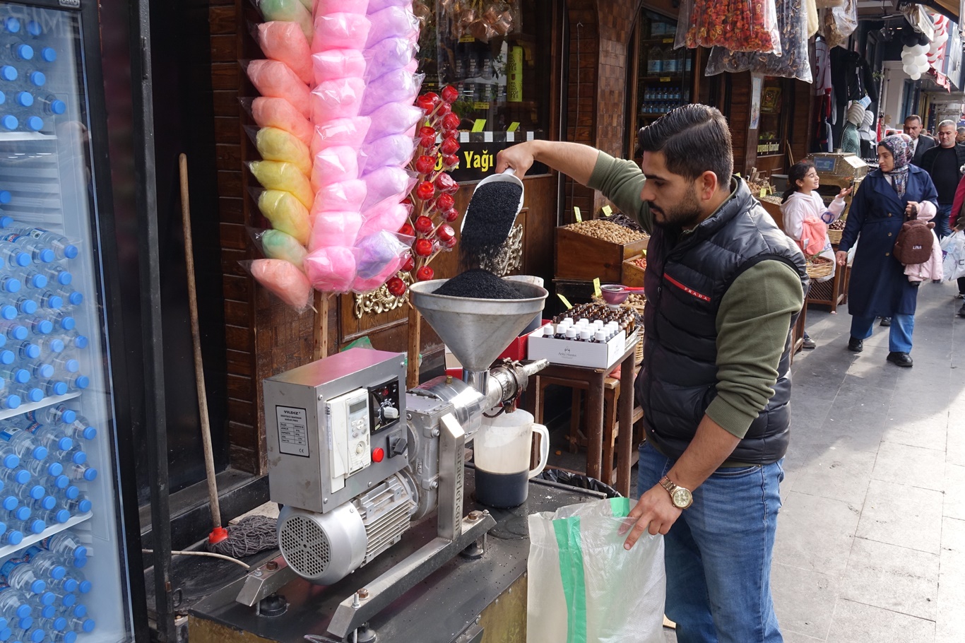Çörek otu yağının özellikle kış aylarında artan taleple birlikte taze sıkım olarak satışa sunulduğunu belirten işletmeciler, ürünün kullanım alanları ve fiyatları hakkında bilgi verdi.